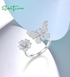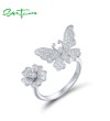 SANTUZZA 925 Sterling Silver Open Rings White Cubic Zirconia Lovely Butterfly & Flower Jewelry