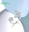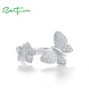 SANTUZZA 925 Sterling Silver Open Rings White Cubic Zirconia Edgy Cute Butterfly & Flower Jewelry