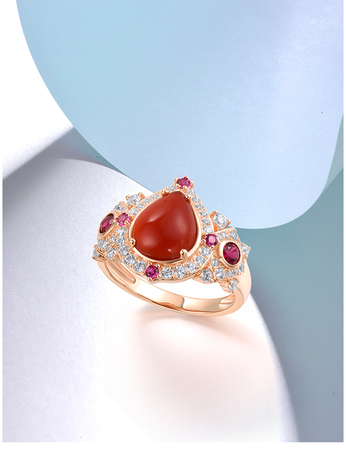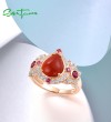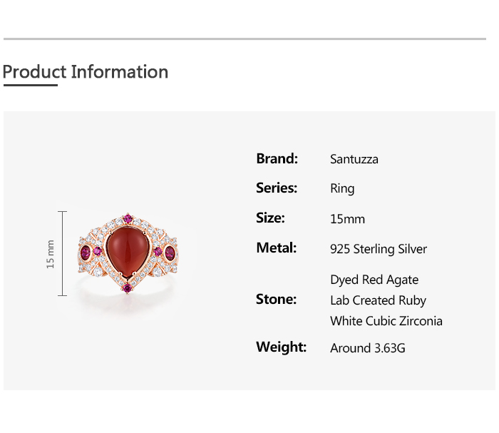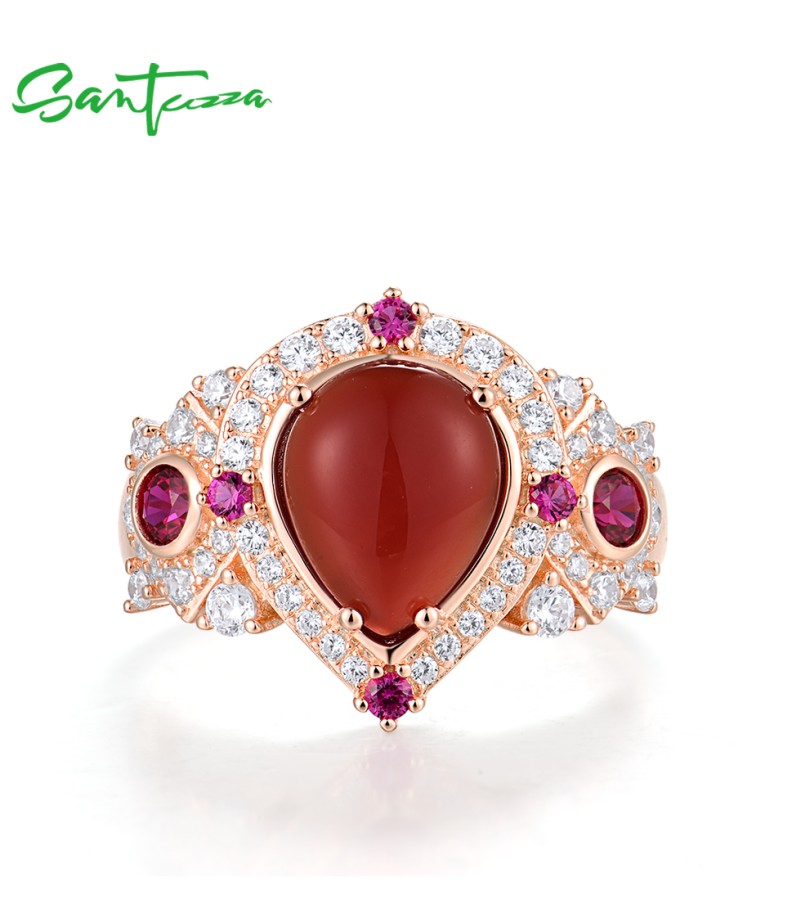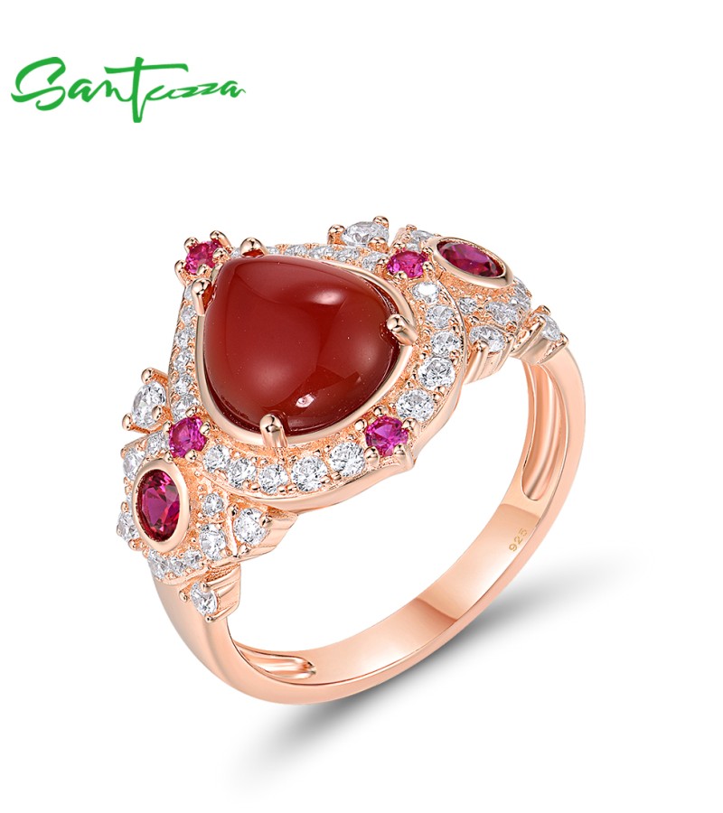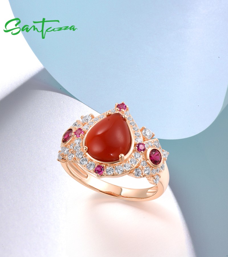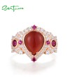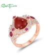 SANTUZZA 925 Sterling Silver Rings Sparkling Dyed Red Agate Created Ruby Jewelry