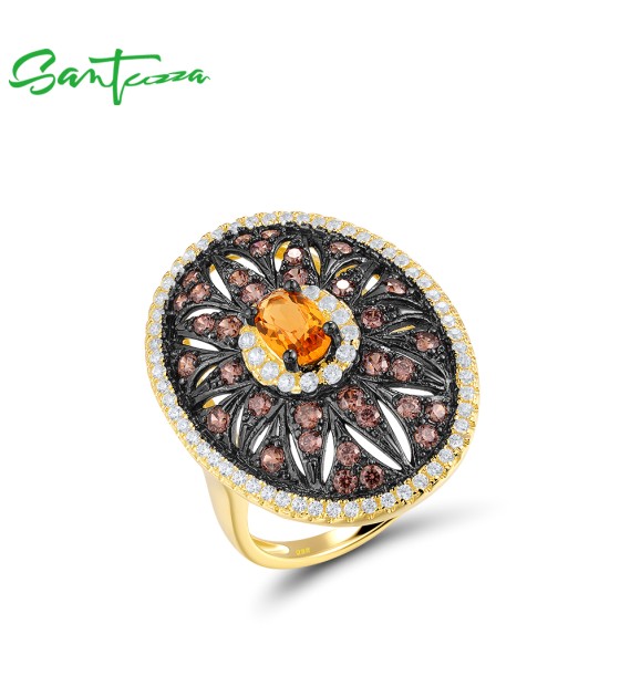 SANTUZZA 925 Sterling Silver Rings Chocolate CZ Flower Oval Jewelry