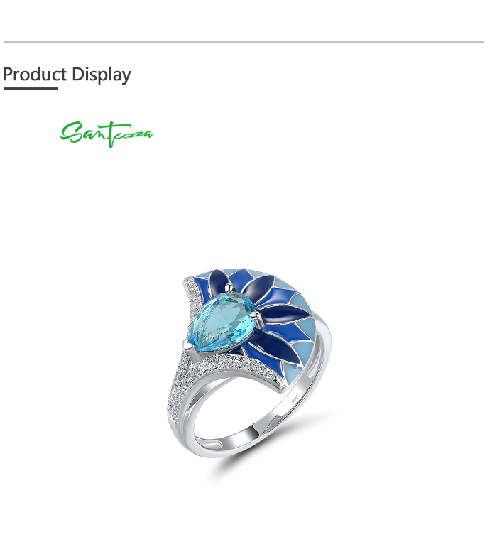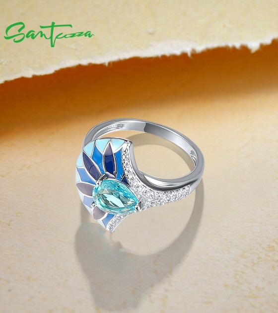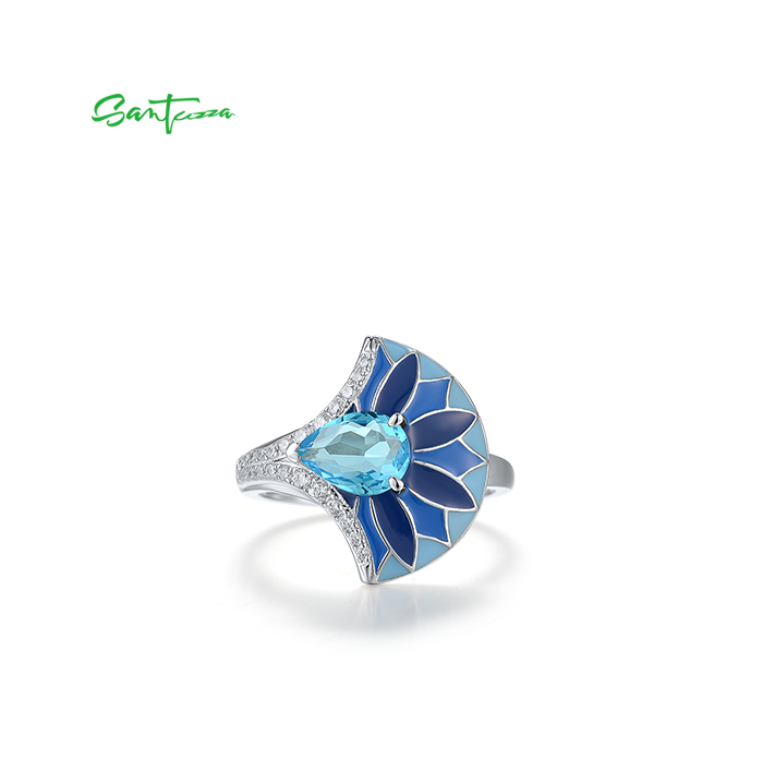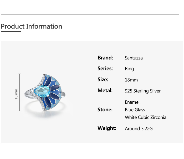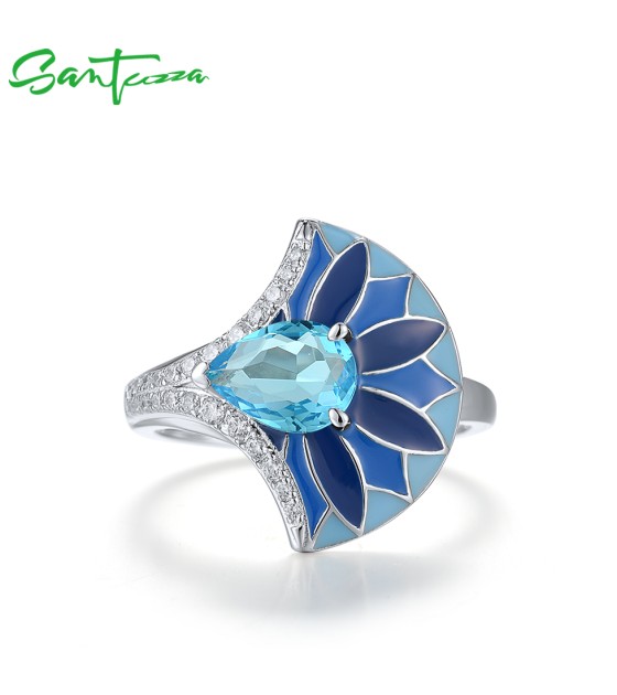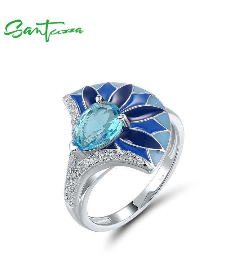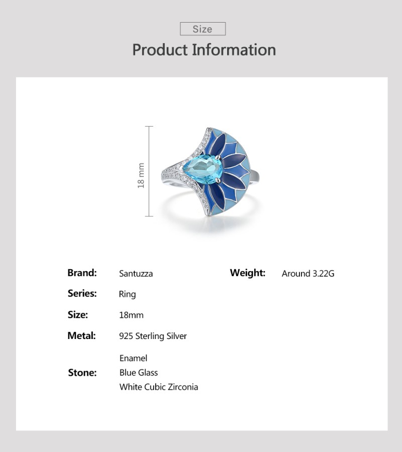 SANTUZZA 925 Sterling Silver Rings Blue Stone Enamel Fan Shape Jewelry