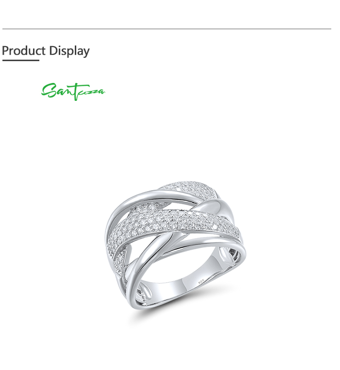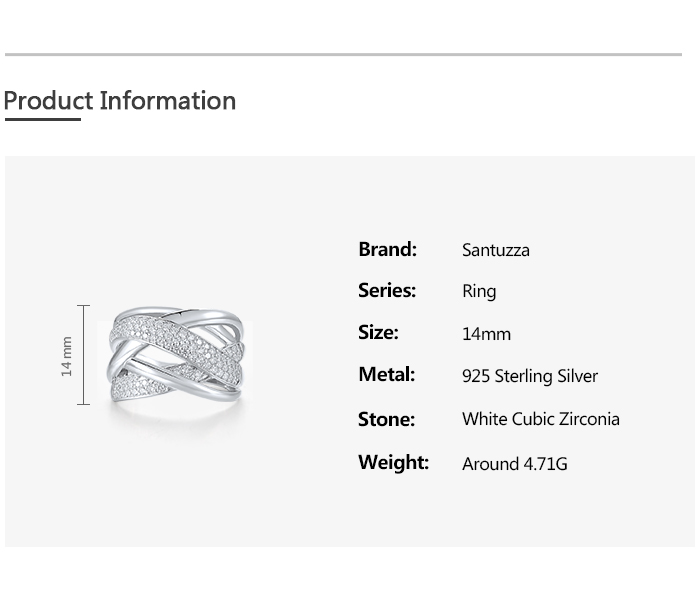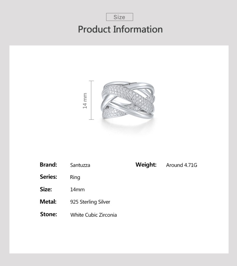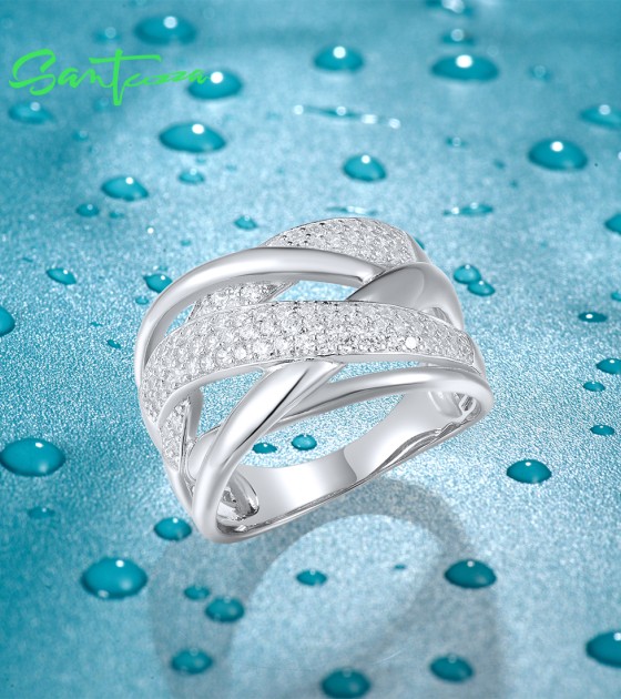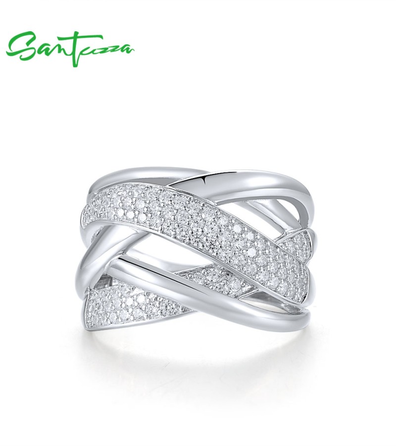 SANTUZZA 925 Sterling Silver Rings White Cubic Zirconia Jewelry