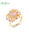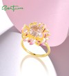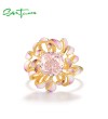 SANTUZZA 925 Sterling Silver Ring Pink Cubic Zirconia Cornflower Jewelry