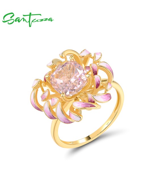SANTUZZA 925 Sterling Silver Ring Pink Cubic Zirconia Cornflower Jewelry
