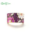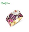 SANTUZZA Genuine 925 Sterling Silver Ring Sparkling Pink Spinel Colorful Flower Jewelry