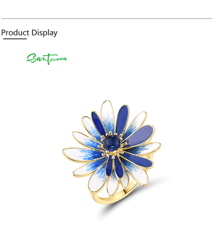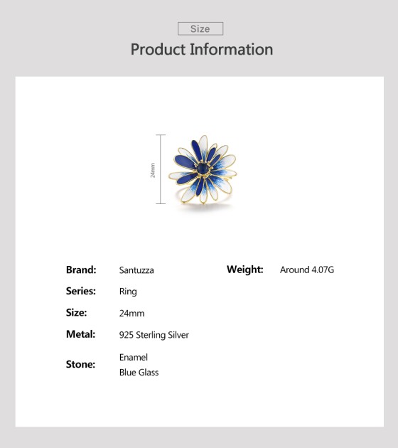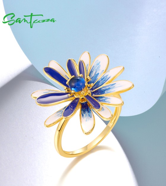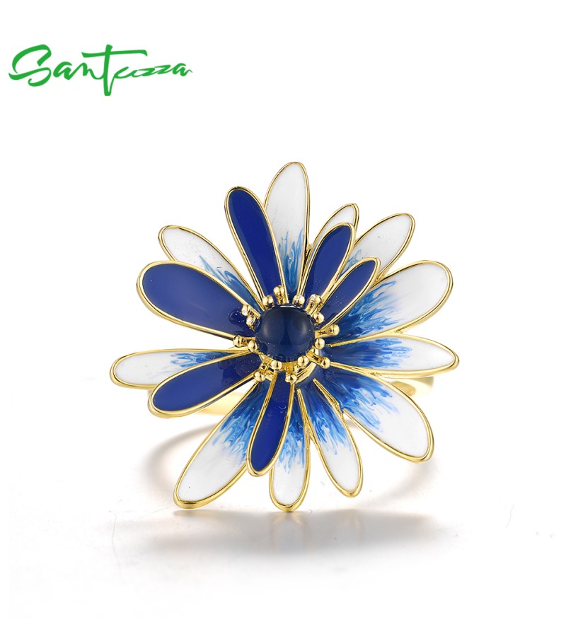 SANTUZZA 925 Sterling Silver Rings White Blue Enamel Chic Daisy Jewelry