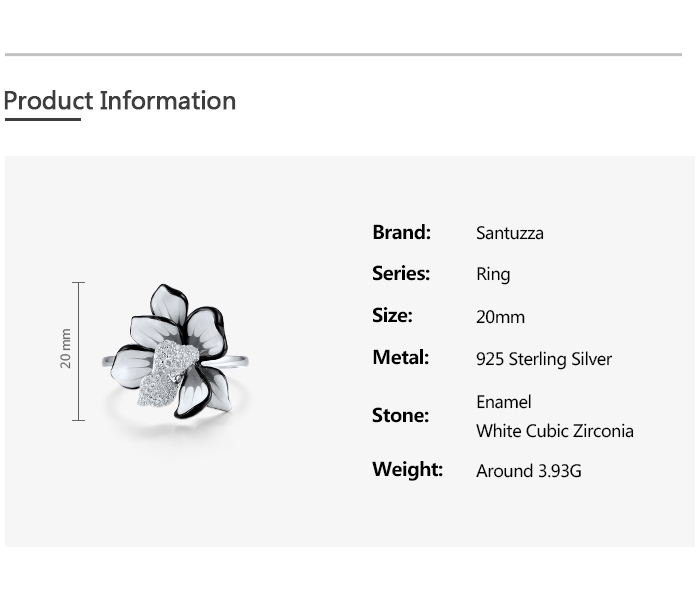 SANTUZZA 925 Sterling Silver Ring Sparkling Zircon White Enamel Flower Jewelry - US 8