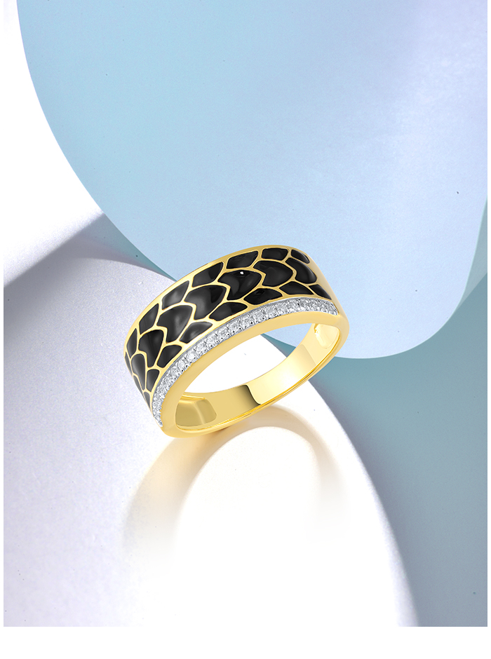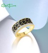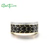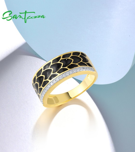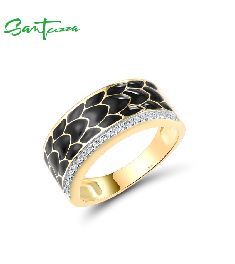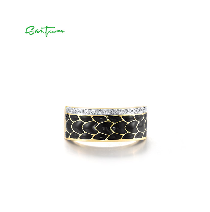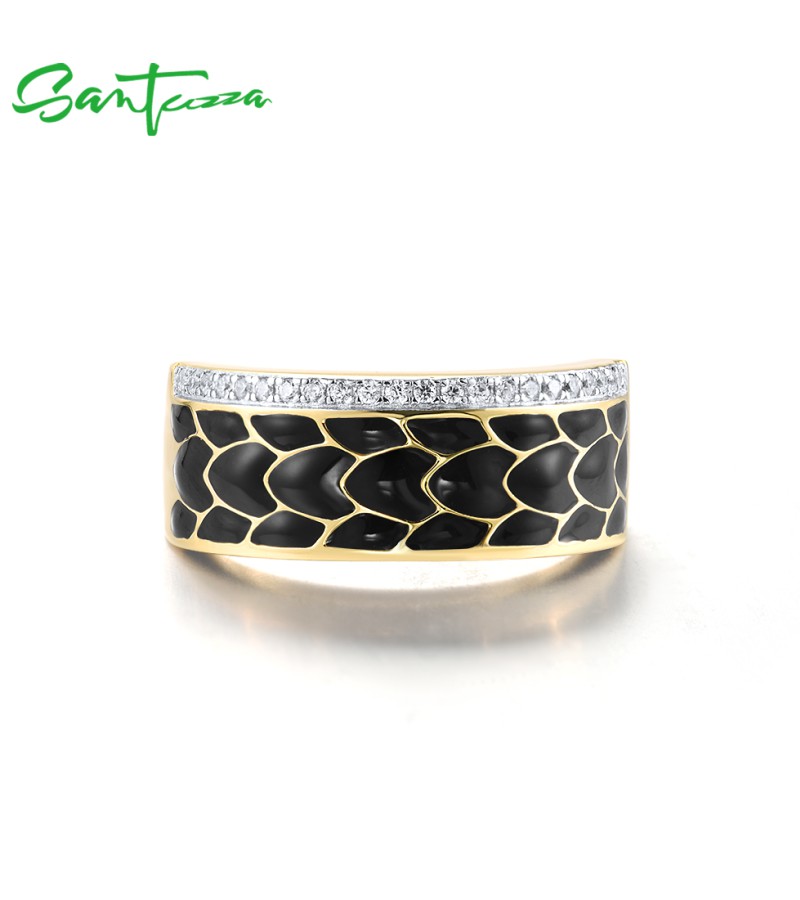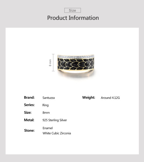 SANTUZZA 925 Sterling Silver Ring White CZ Black Enamel Antique Design Jewelry