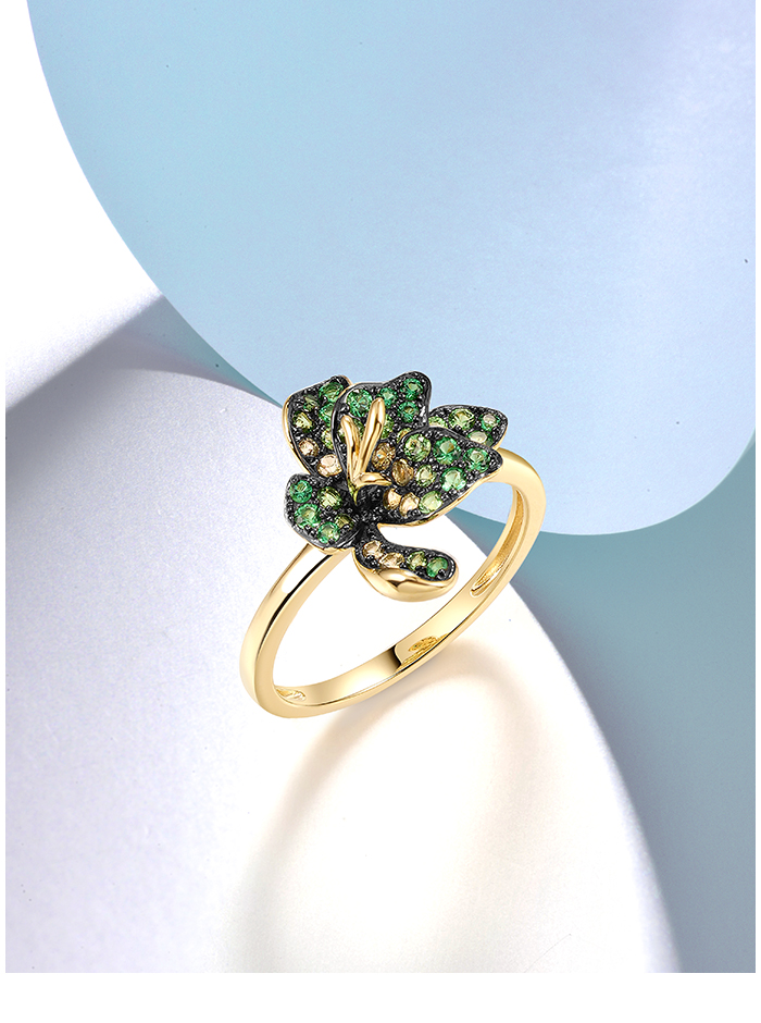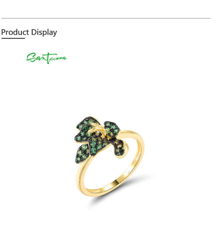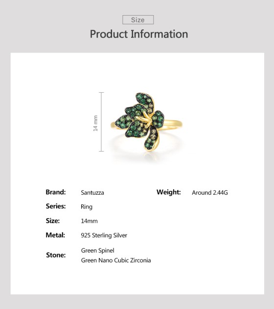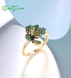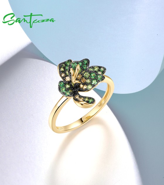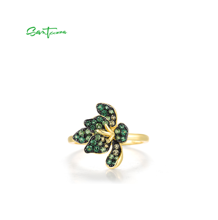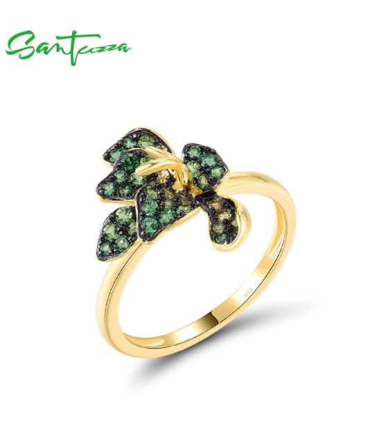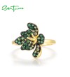 SANTUZZA 925 Sterling Silver Rings Sparkling Green Spinel Lili Flower Jewelry