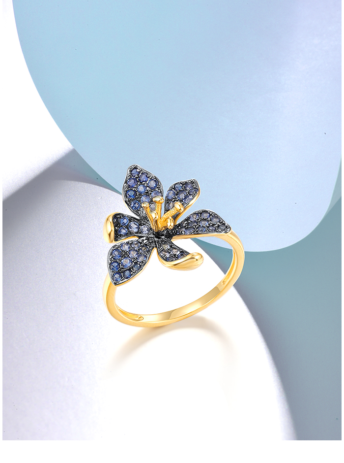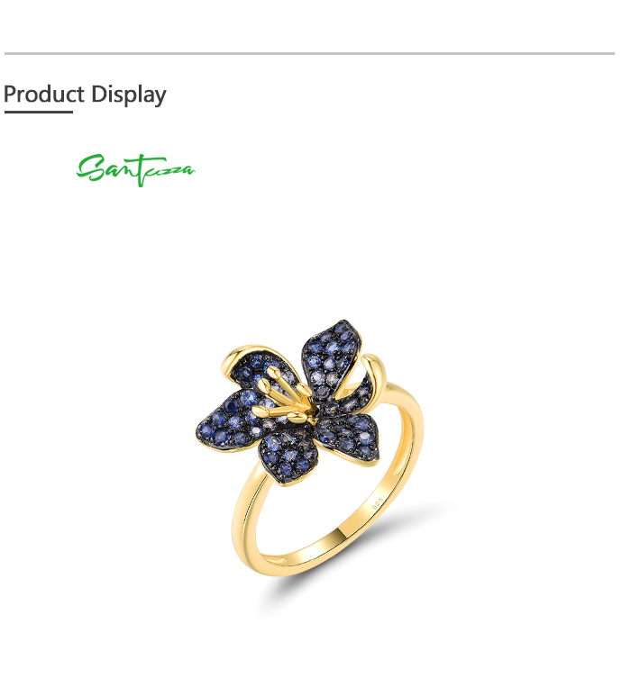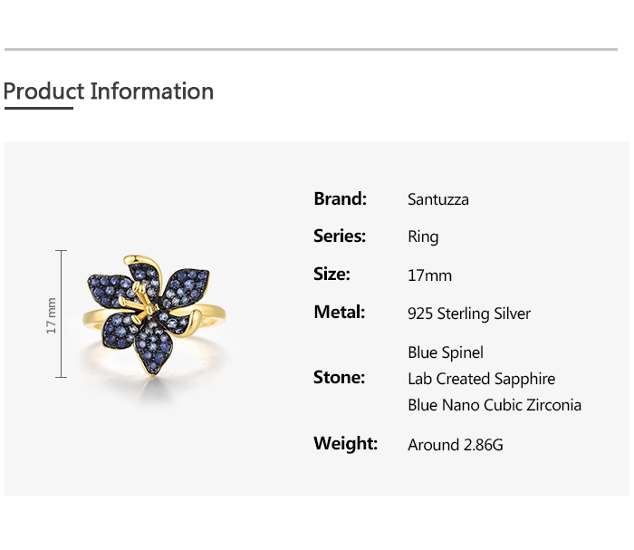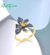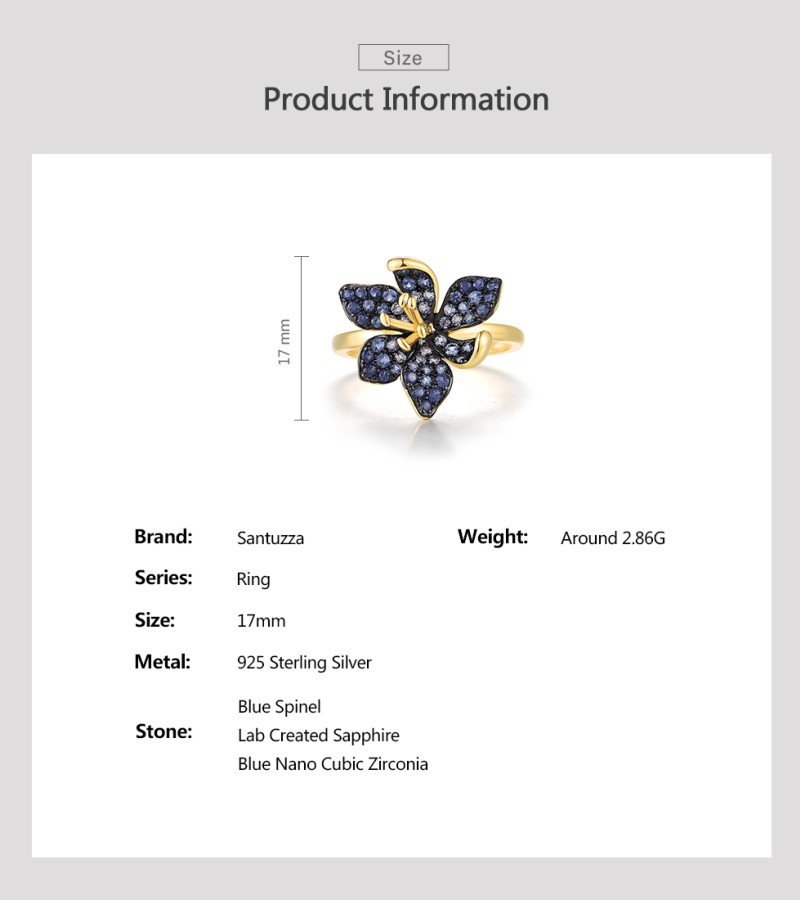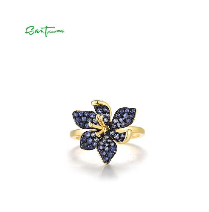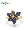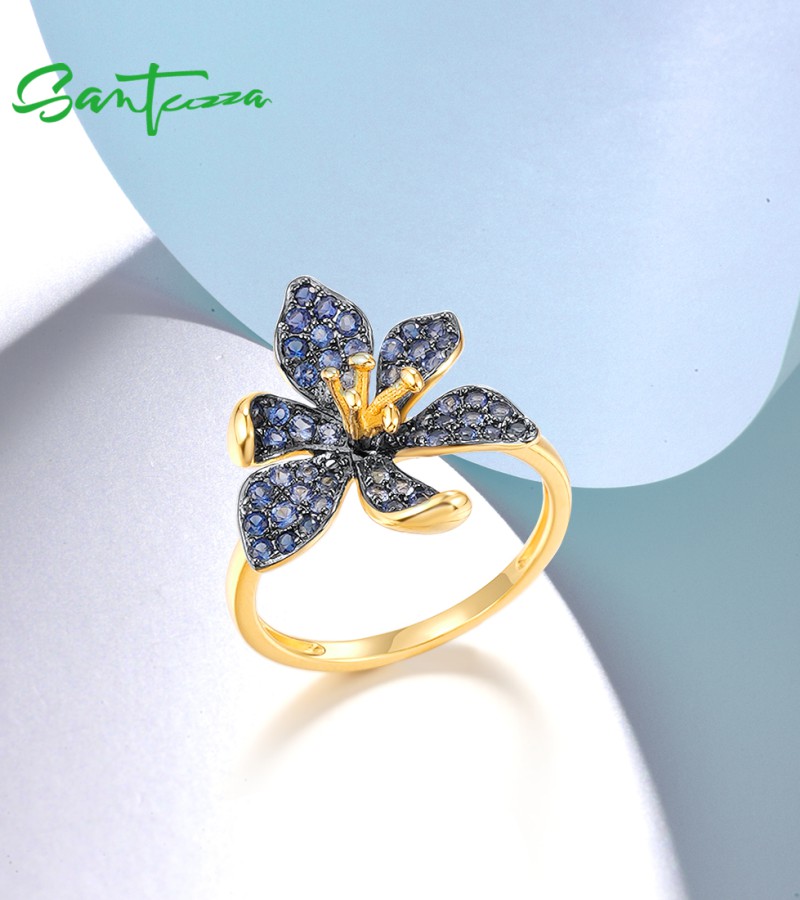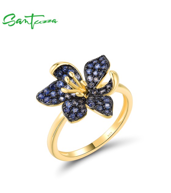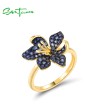 SANTUZZA 925 Sterling Silver Rings Blue Spinel Luminous Flower Jewelry