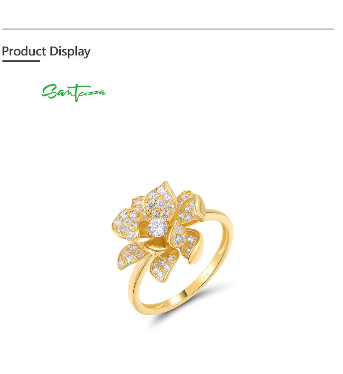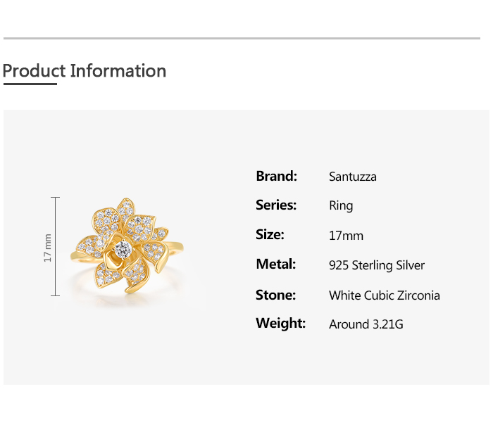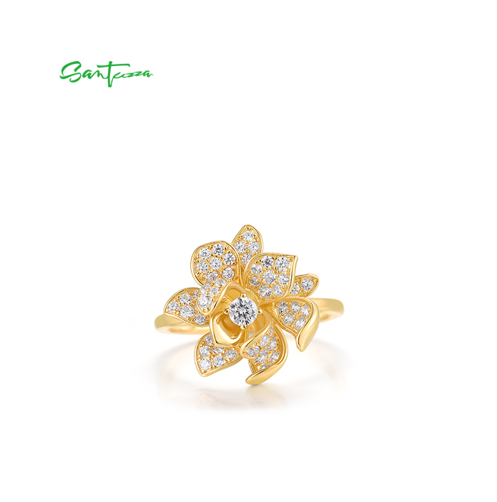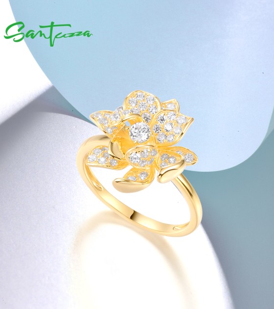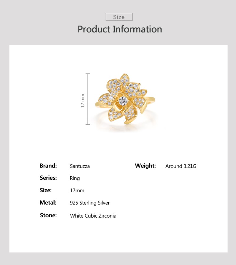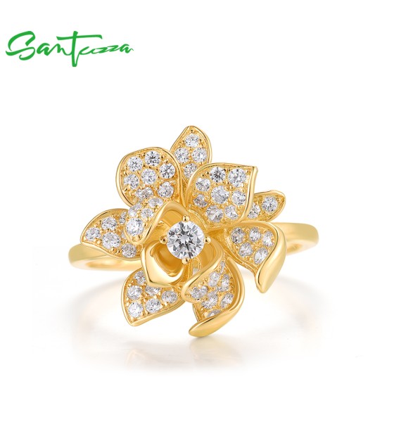SANTUZZA 925 Sterling Silver Rings Sparkling Synthetic Zircon Fantastic Flower Jewelry