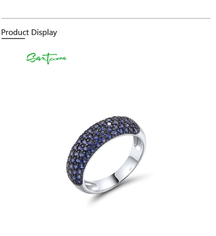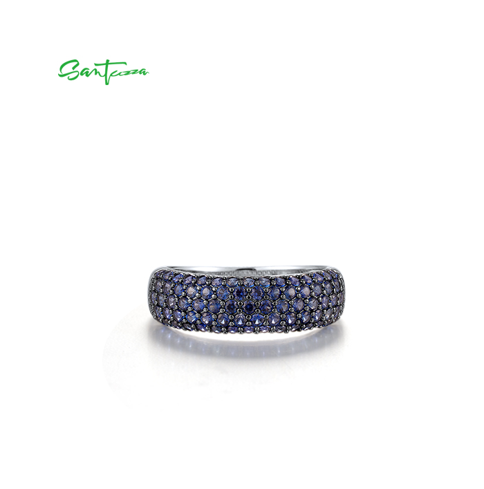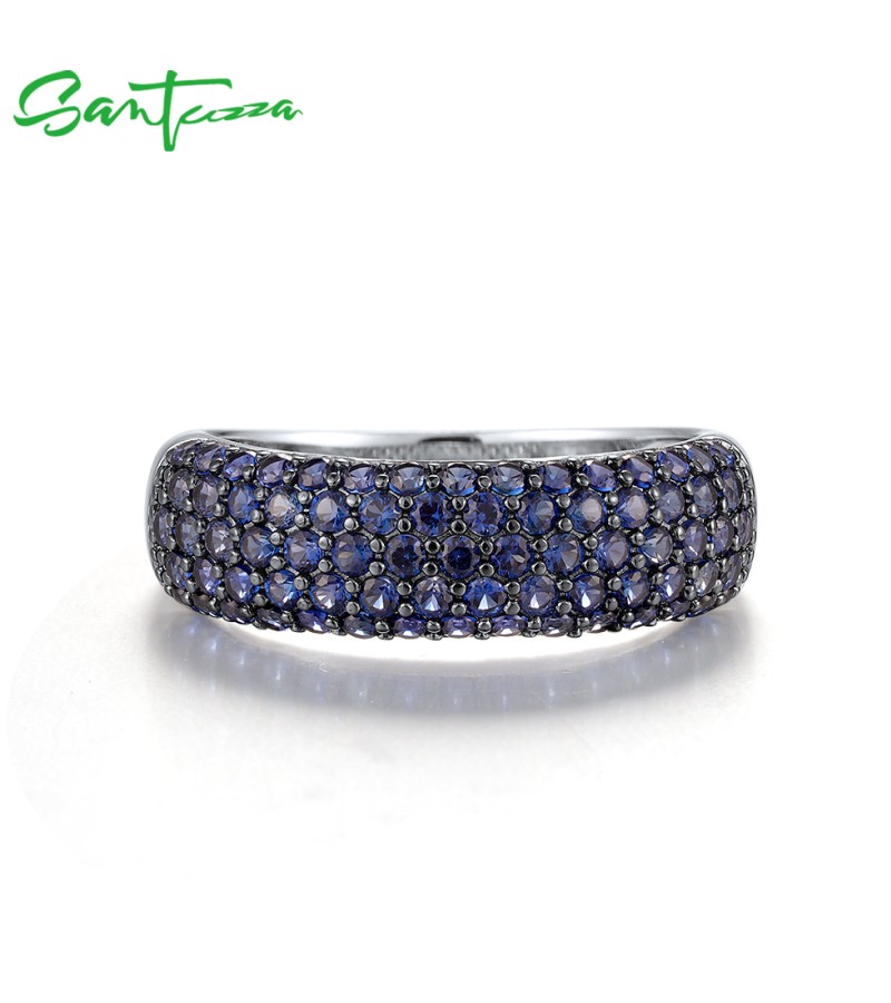 SANTUZZA 925 Sterling Silver Rings Created Blue Sapphire Original Classical Jewelry