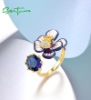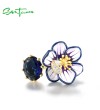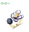 SANTUZZA 925 Sterling Silver Opened Rings Sparkling Blue Stone Enamel Flower Jewelry