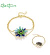 SANTUZZA 925 Sterling Silver Bracelet Green&Blue Flower Enamel Adjustable Chic Gifts Fine Jewelry