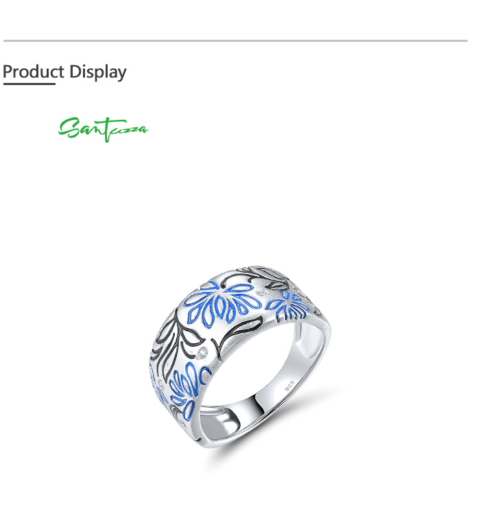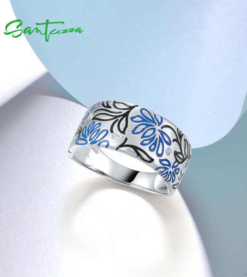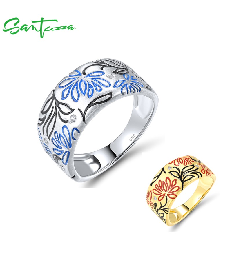 SANTUZZA 925 Sterling Silver Rings Enamel Flower Creative Birthday Daily Gifts Fine Jewelry
