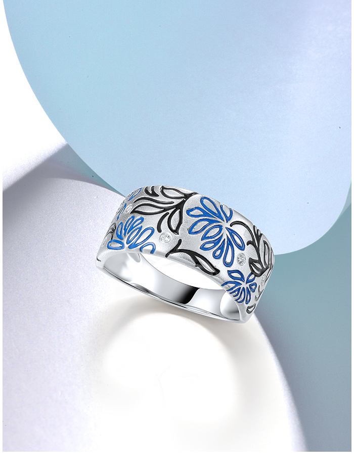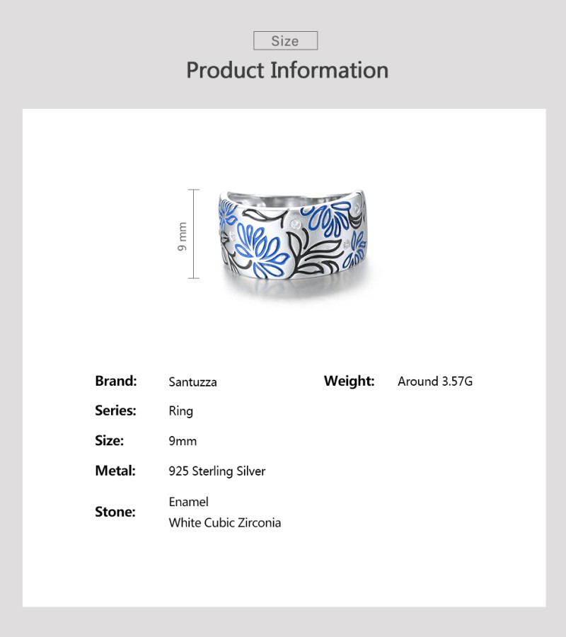 SANTUZZA 925 Sterling Silver Rings Enamel Flower Creative Birthday Daily Gifts Fine Jewelry - Silver Color/US 9