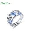 SANTUZZA 925 Sterling Silver Rings Enamel Flower Creative Birthday Daily Gifts Fine Jewelry