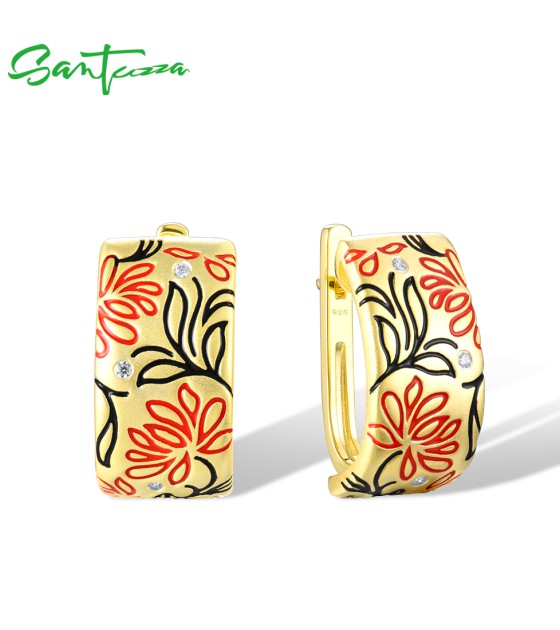 SANTUZZA 925 Sterling Silver Clip Earrings Sparkling Enamel Fashion Fine Jewelry - Yellow Gold Plating