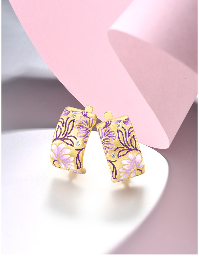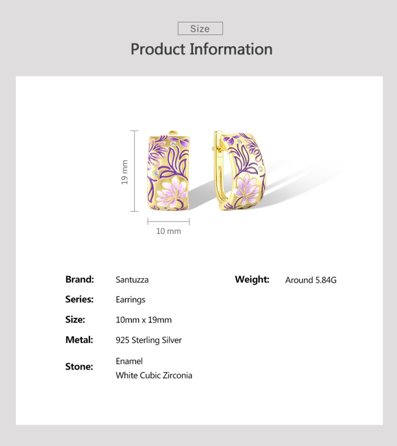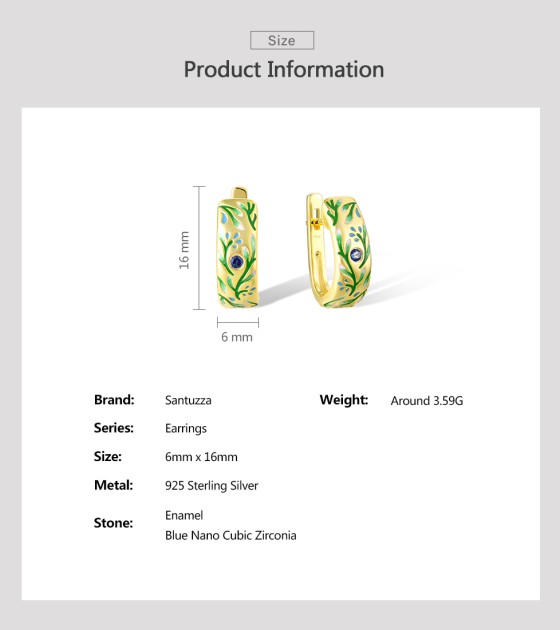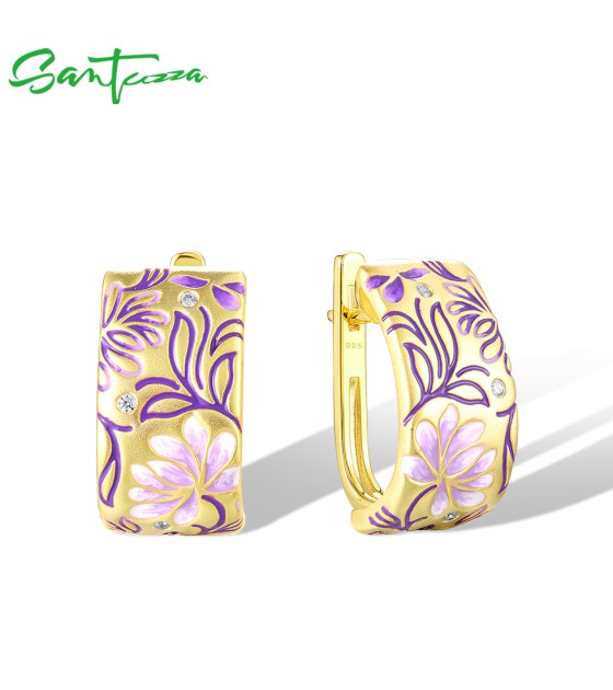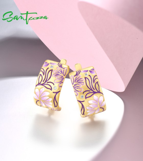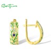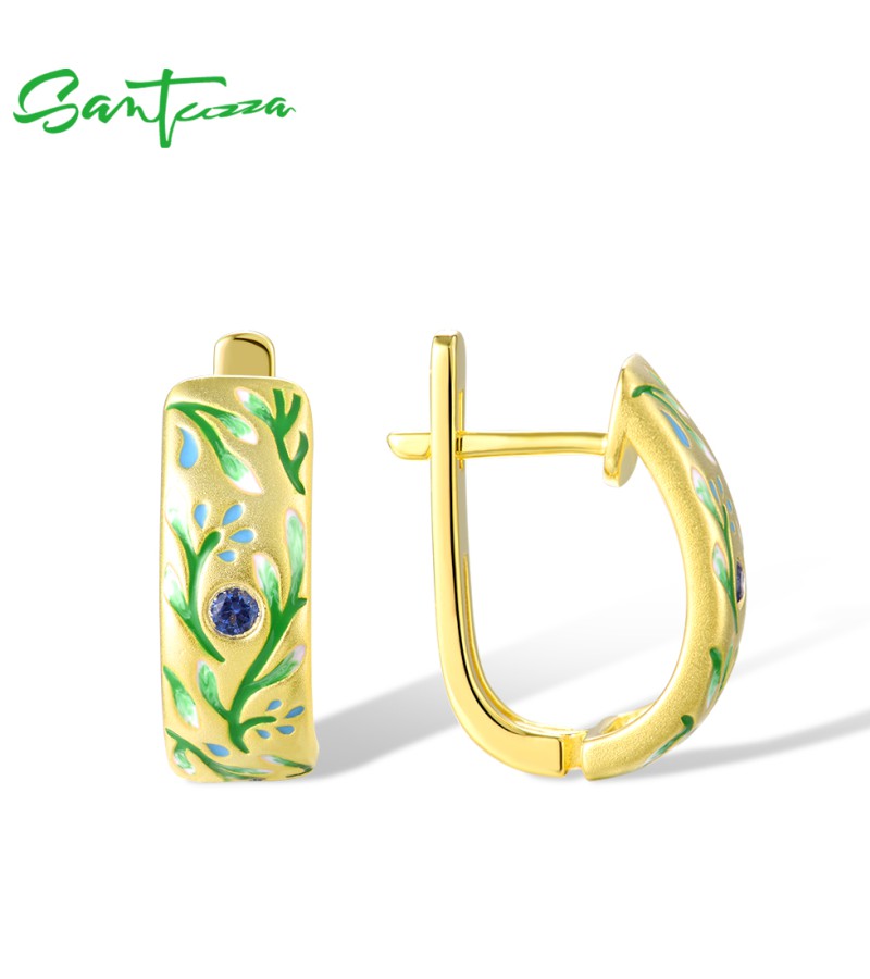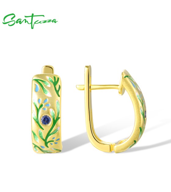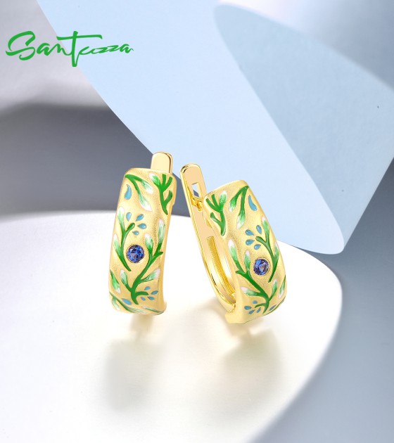 SANTUZZA 925 Sterling Silver Earrings Sparkling Enamel Flower & Trees Fine Jewelry