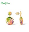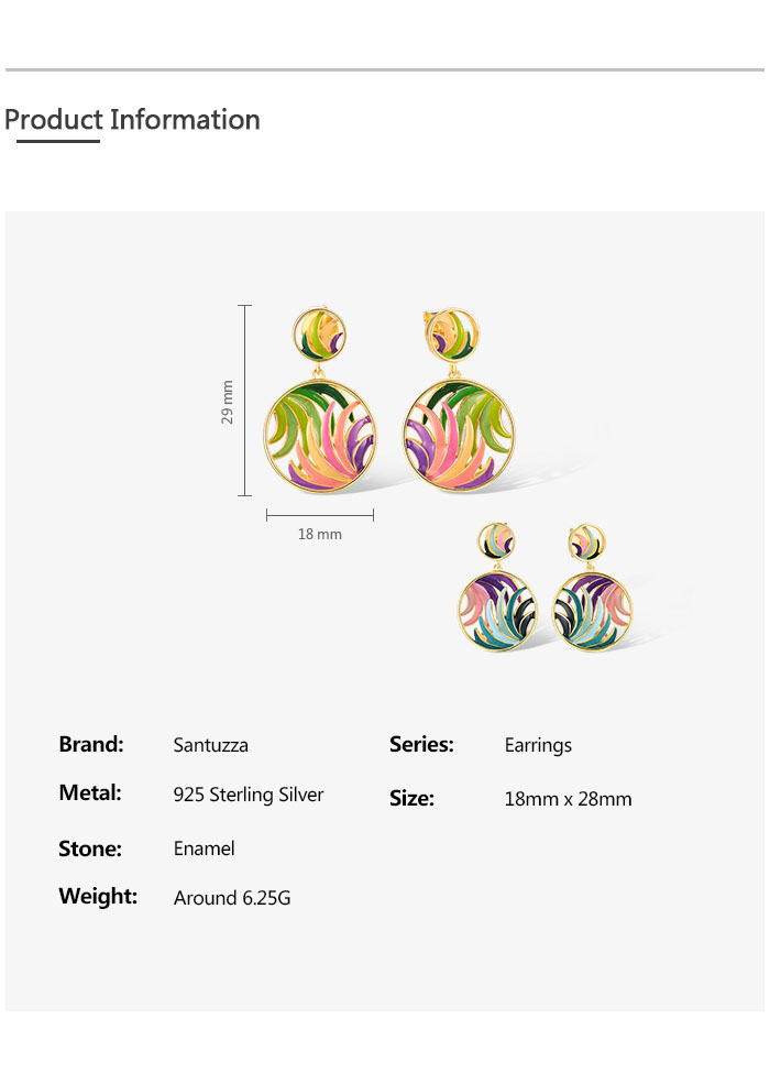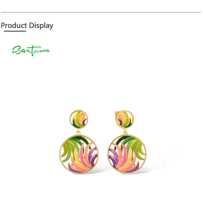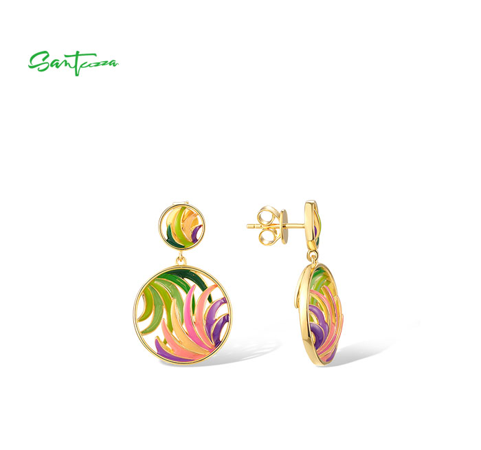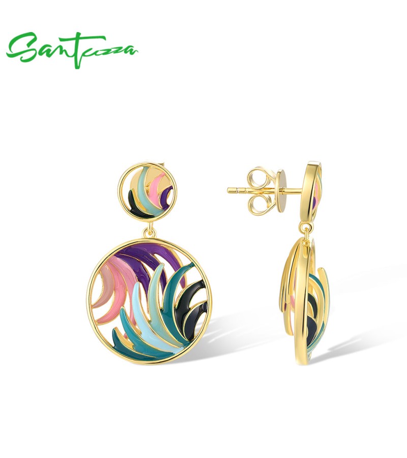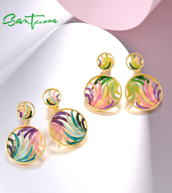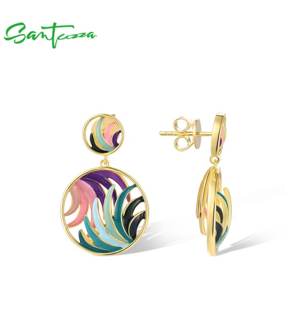 SANTUZZA 925 Sterling Silver Earrings Colorful Ribbon Pattern Hollow Dangle Jewelry