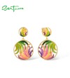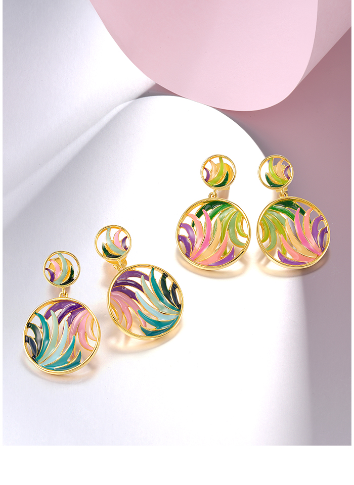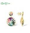 SANTUZZA 925 Sterling Silver Earrings Colorful Ribbon Pattern Hollow Dangle Jewelry - Green Enamel
