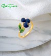 SANTUZZA 925 Silver Ring Fruits Blueberries & Pomegranate Jewelry Enamel