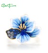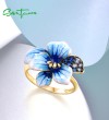 SANTUZZA 925 Sterling Silver Ring Blue Spinel Enamel Flower Chic Wedding Gifts Fine Jewelry