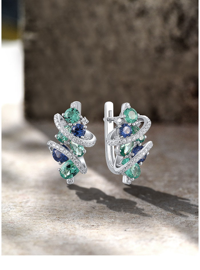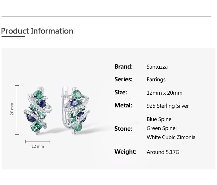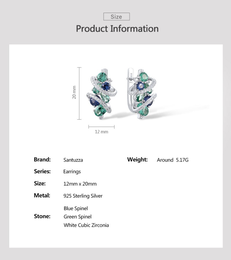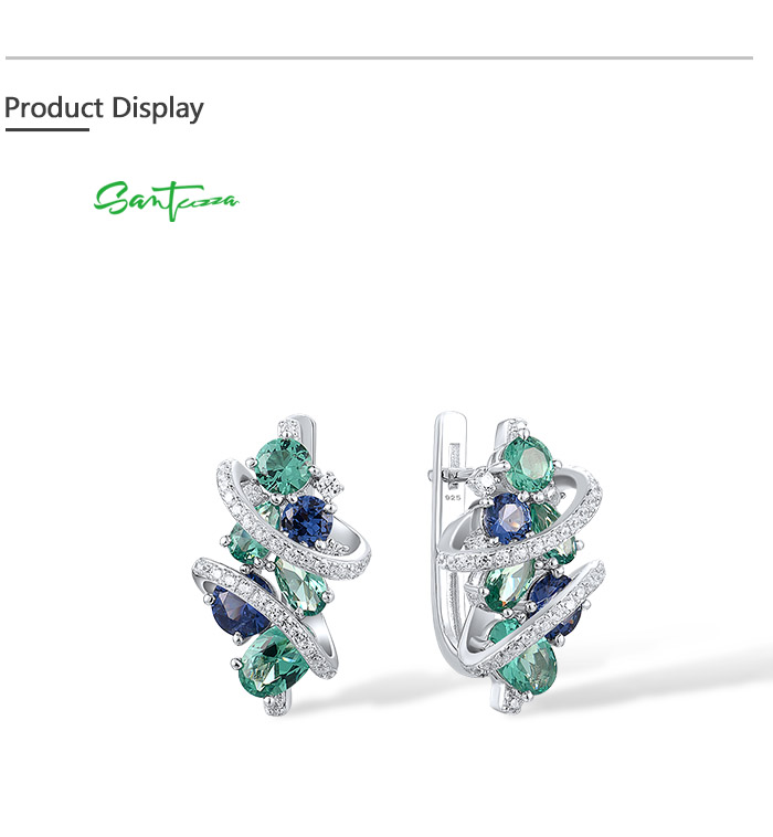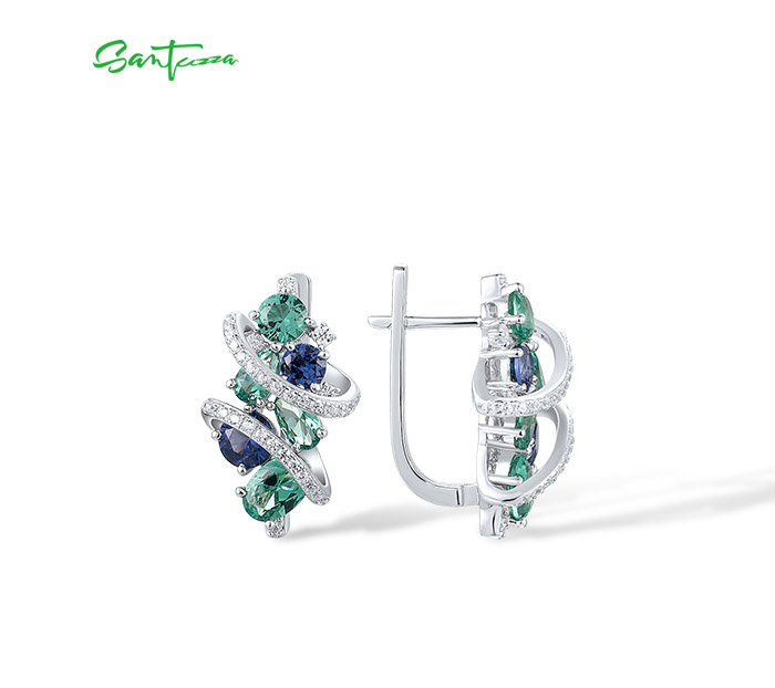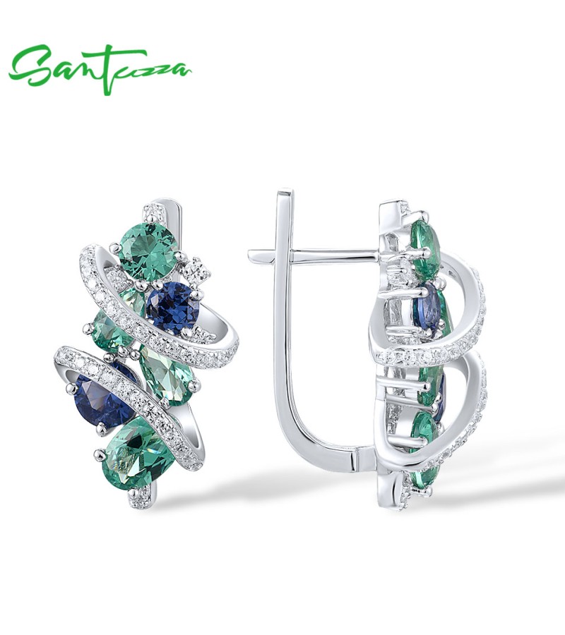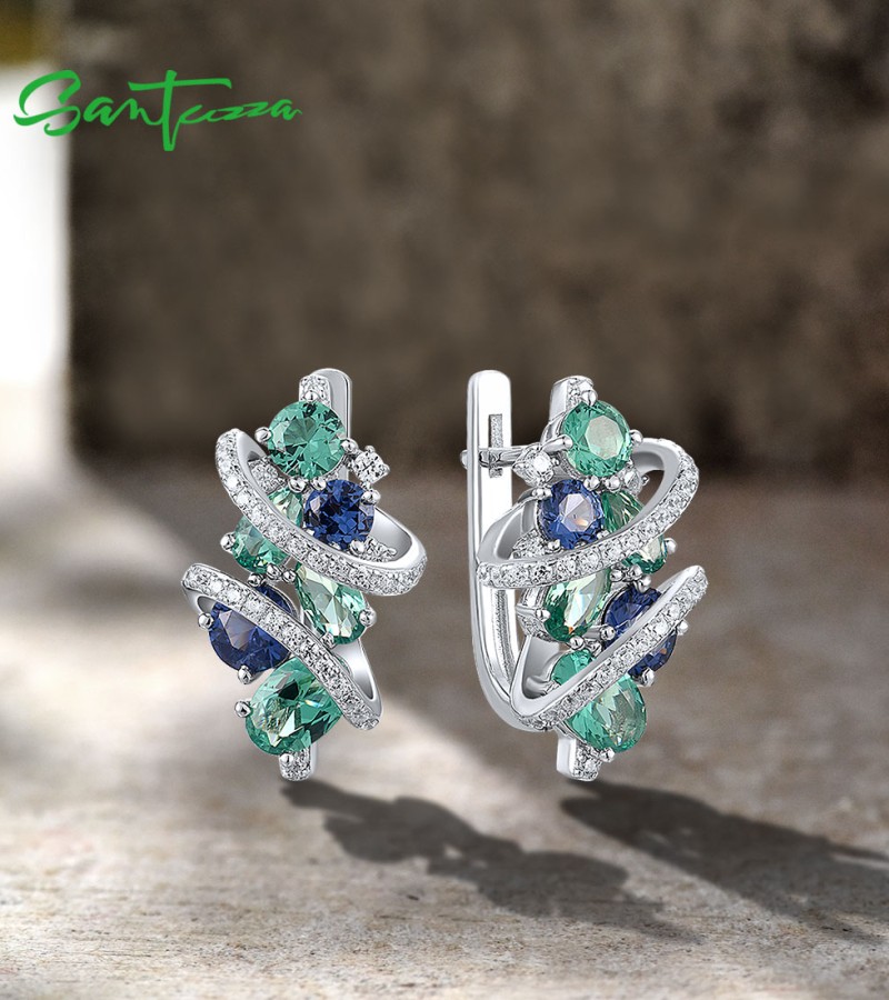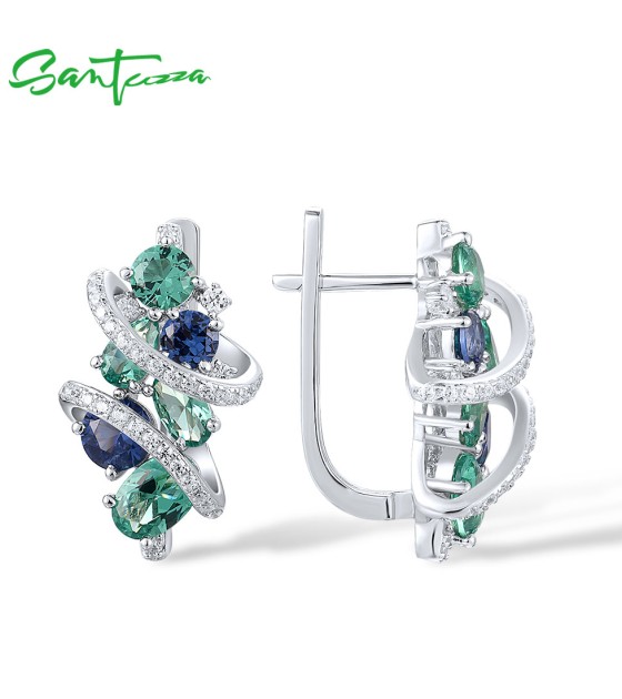 SANTUZZA 925 Sterling Silver Earrings Blue Green Spinel White CZ Earrings Charming Fine Jewelry