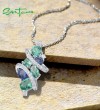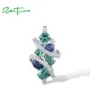 SANTUZZA 925 Sterling Silver Pendant Green Blue Spinel White CZ Pendant Gorgeous Trendy Fine Jewelry