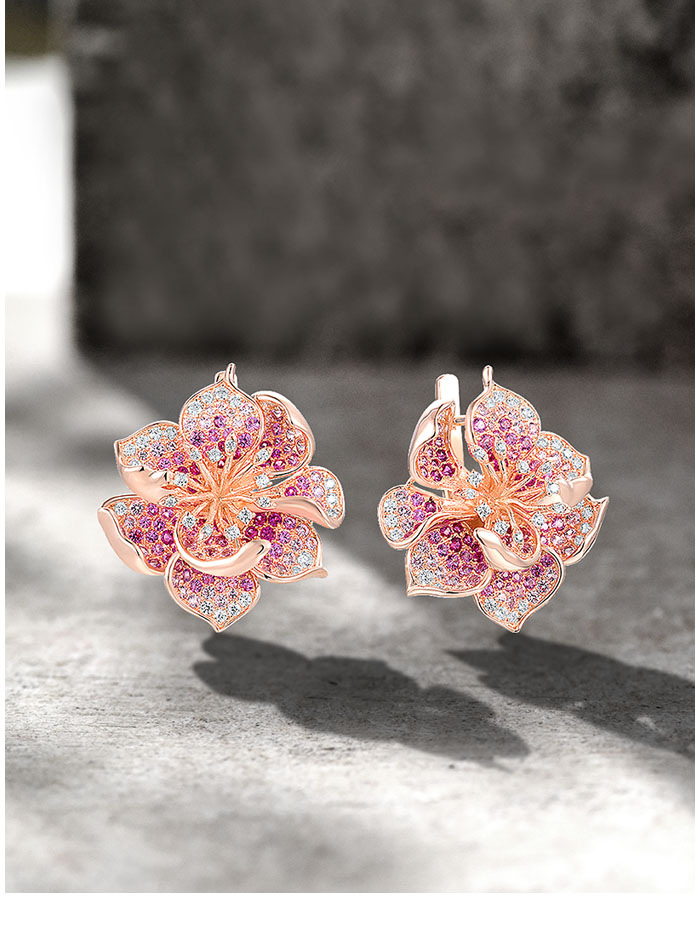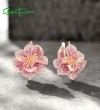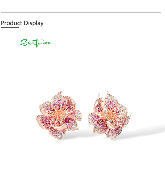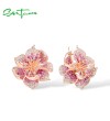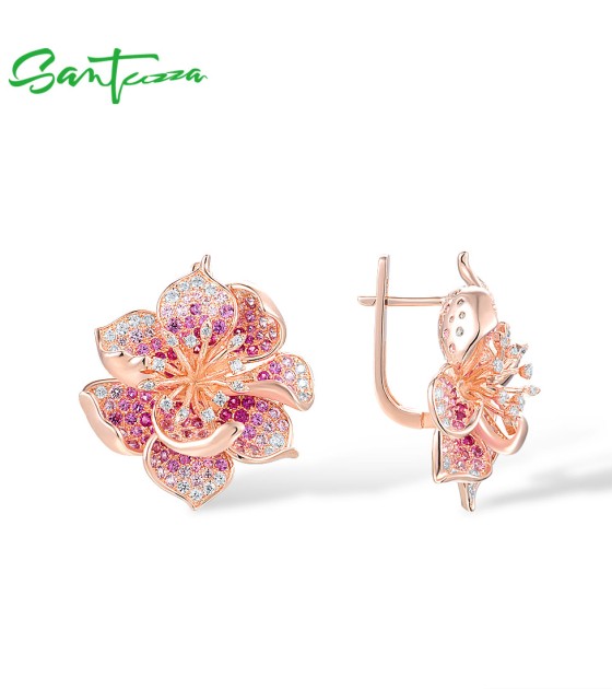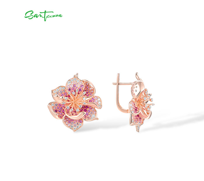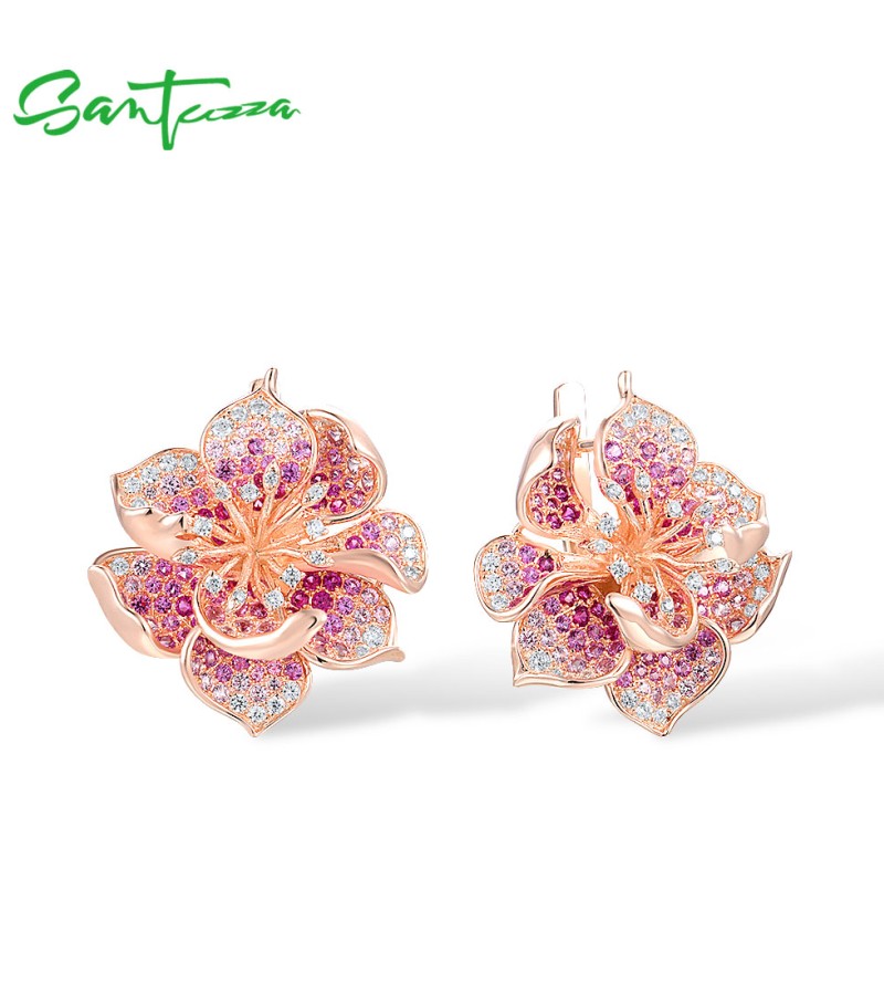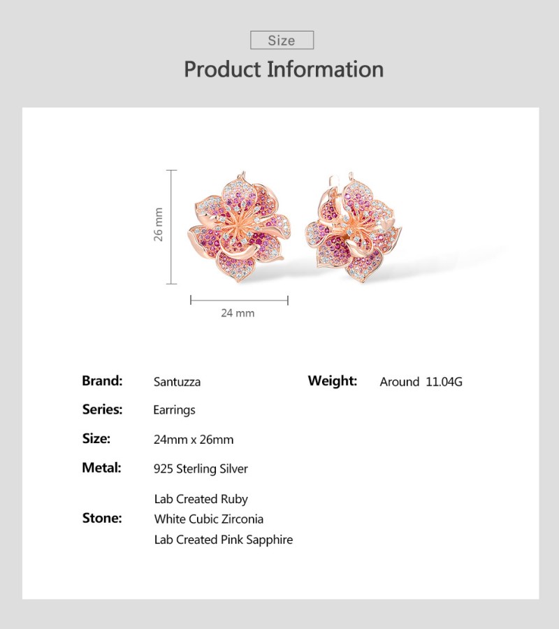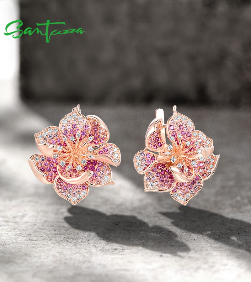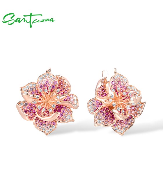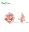 SANTUZZA 925 Sterling Silver Earrings For Women Lab Created Ruby Pink Sapphire White CZ Gradient Flower Jewelry