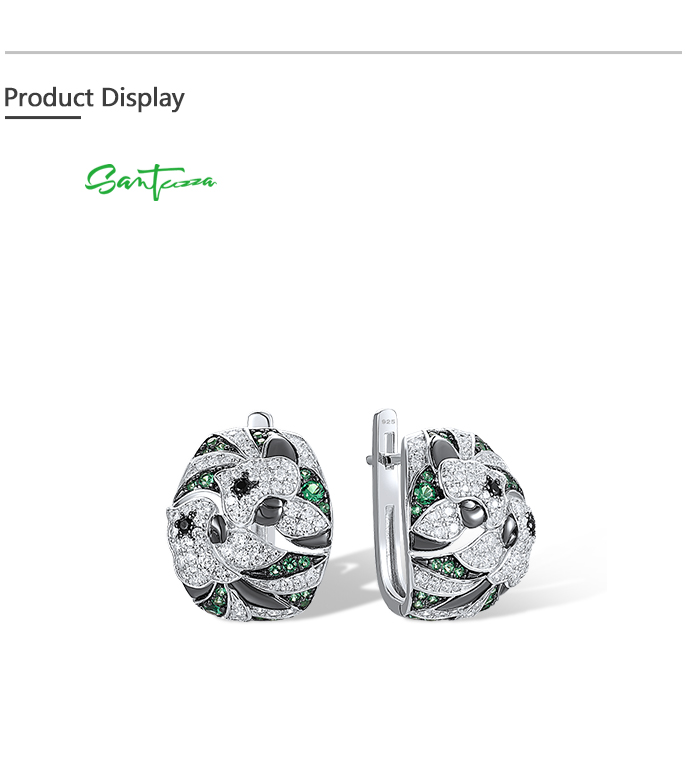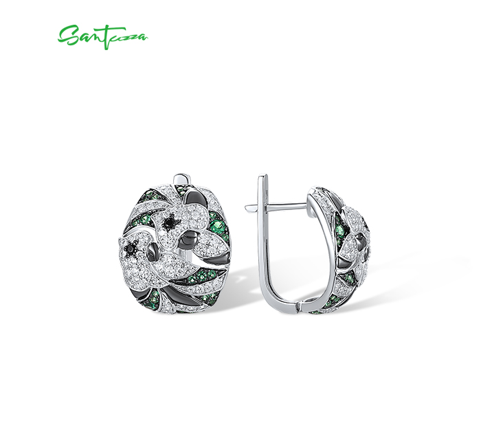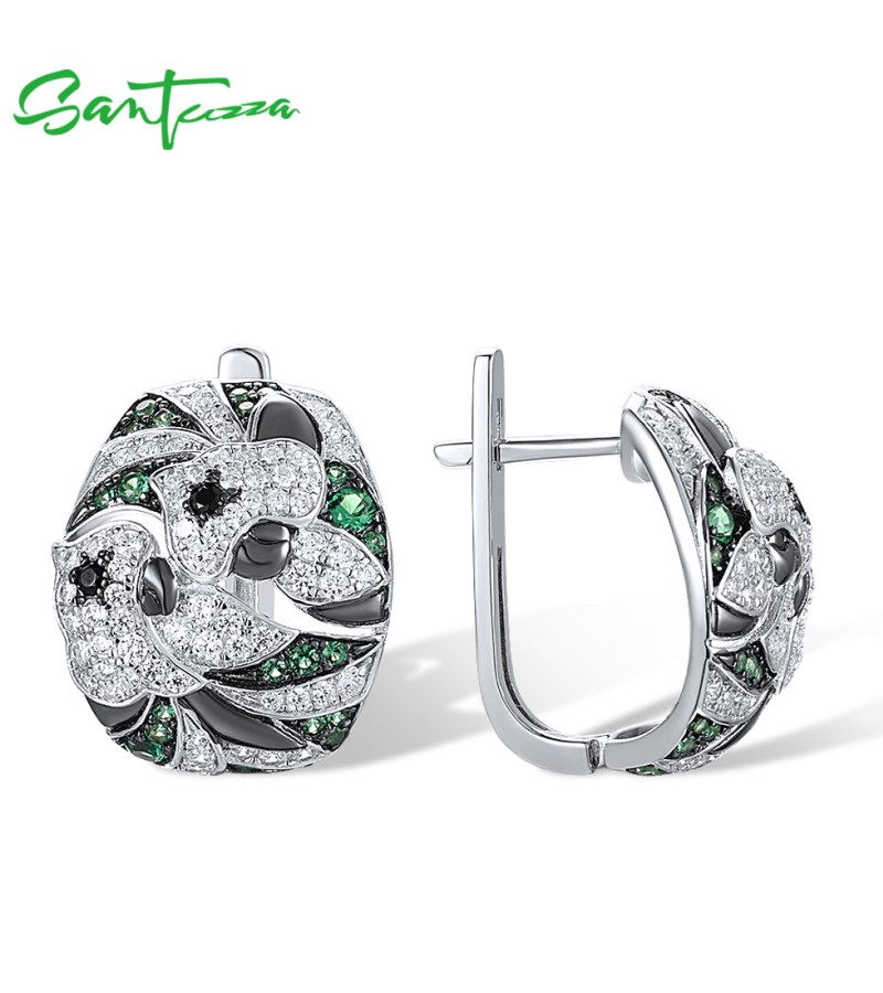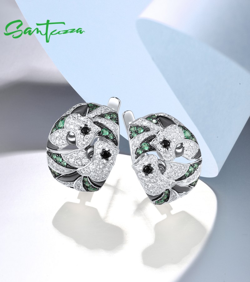 SANTUZZA 925 Sterling Silver Earrings Green Black Spinel White CZ Flower Fine Jewelry