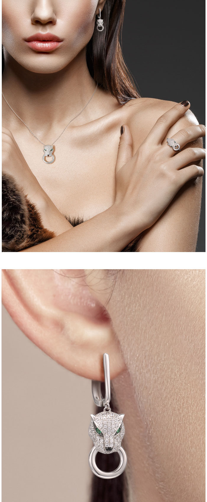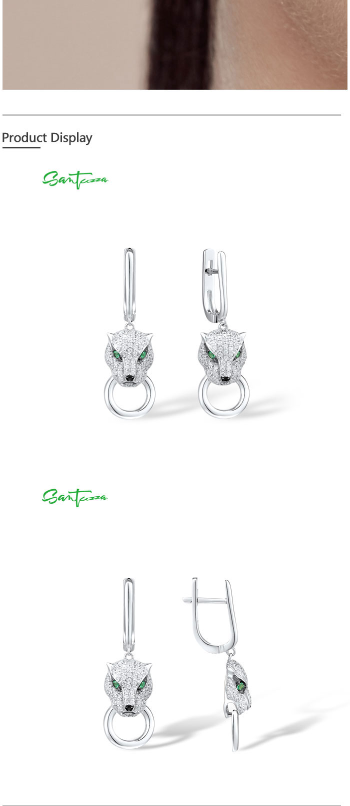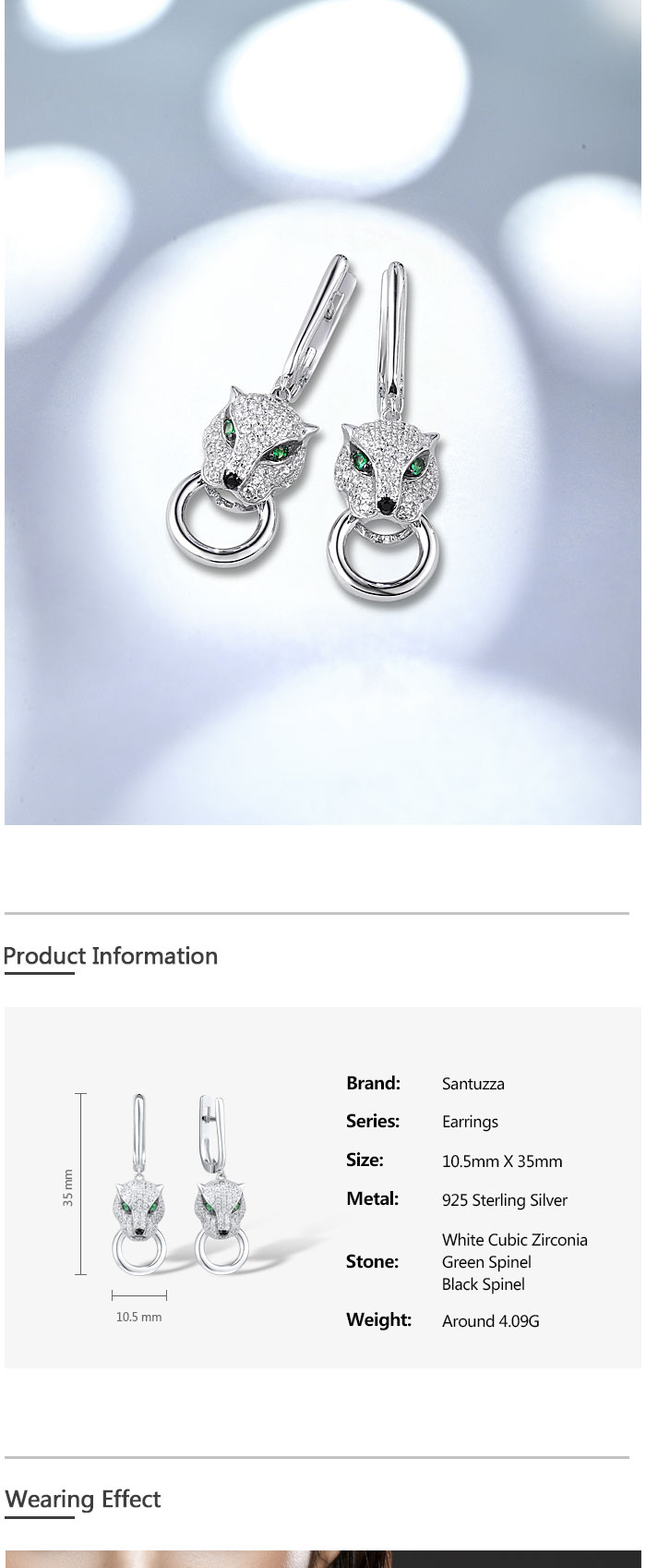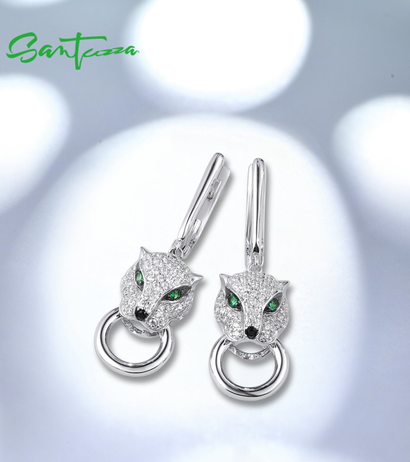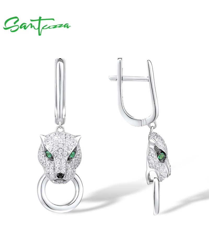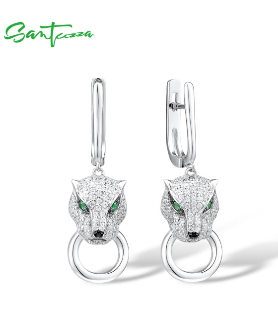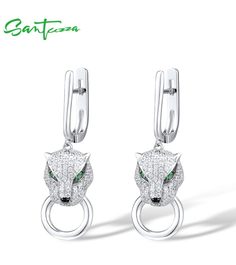 SANTUZZA 925 Sterling Silver Drop Earrings For Women Leopard White Cubic Zirconia Jewelry