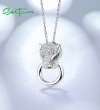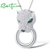 SANTUZZA 925 Sterling Silver Pendant Shiny White CZ Panther Green Black Spinel Party Jewelry