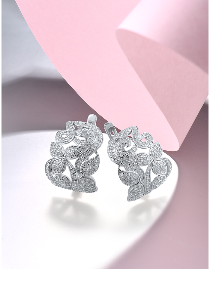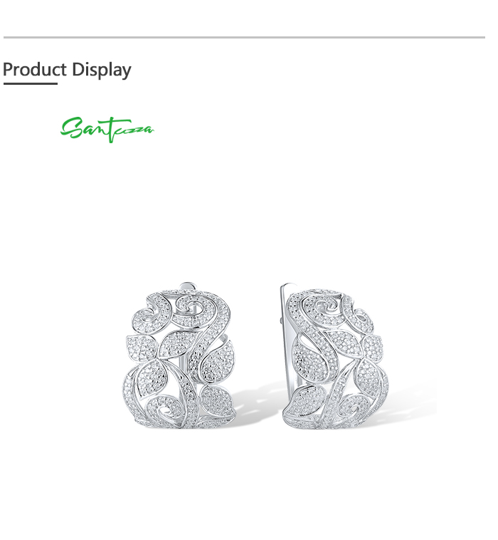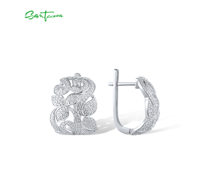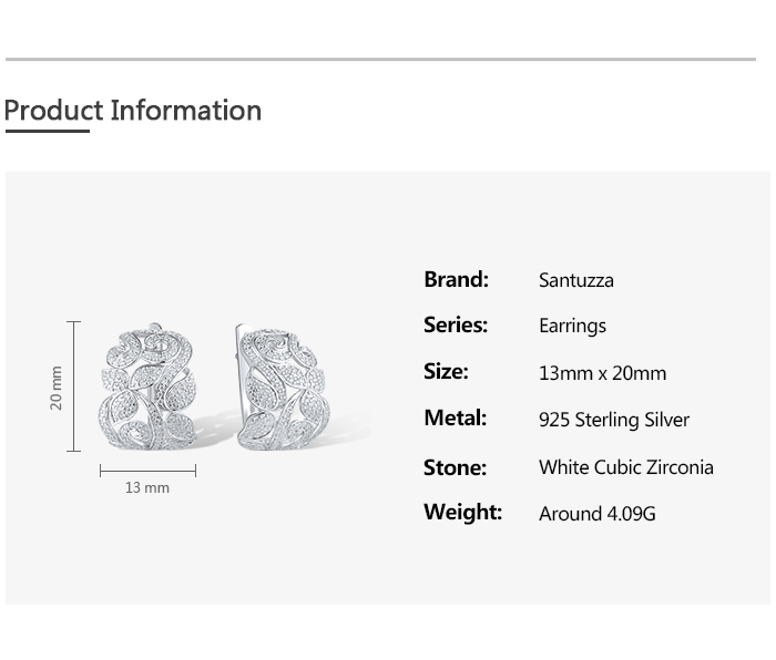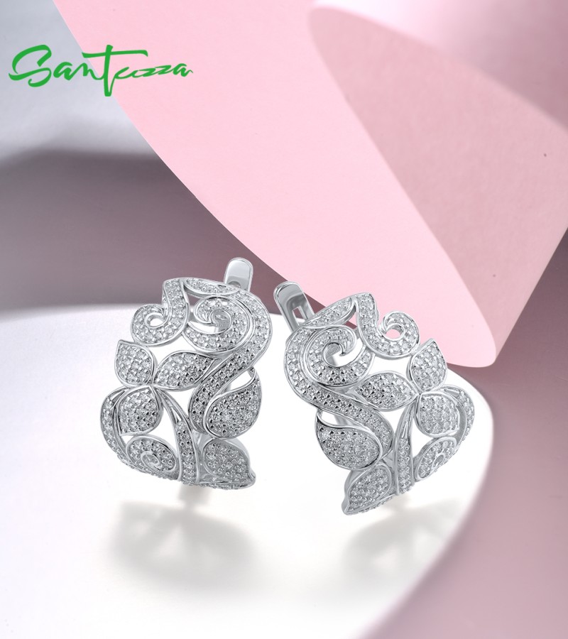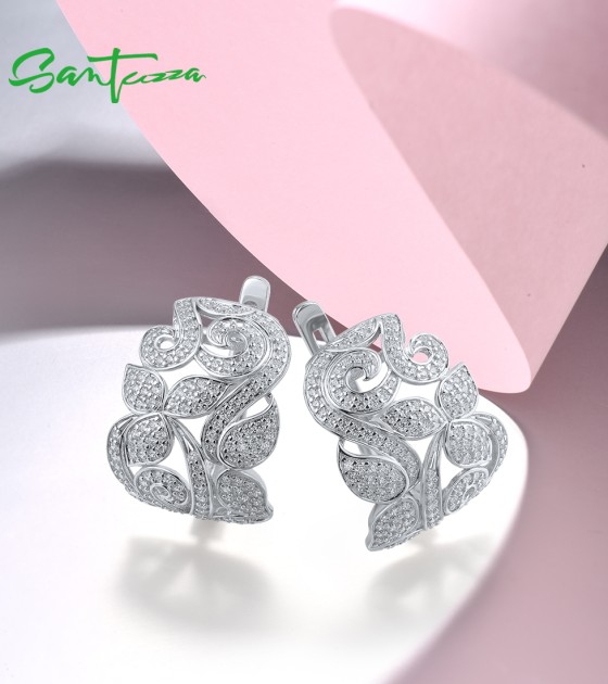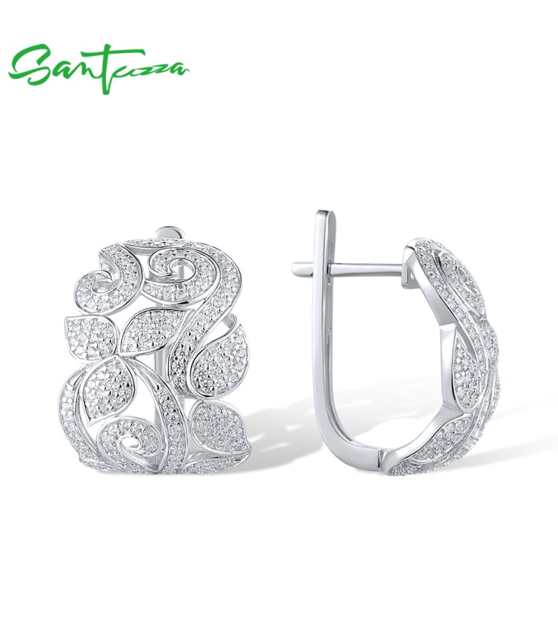SANTUZZA 925 Sterling Silver Earrings White CZ Flower Fine Jewelry