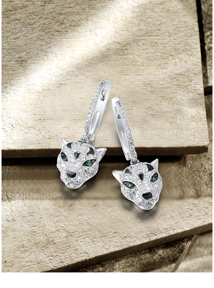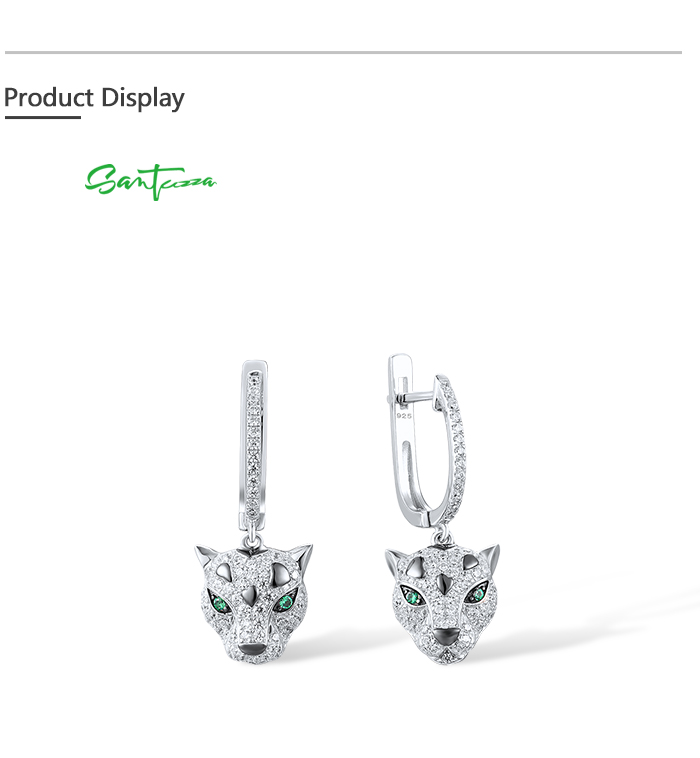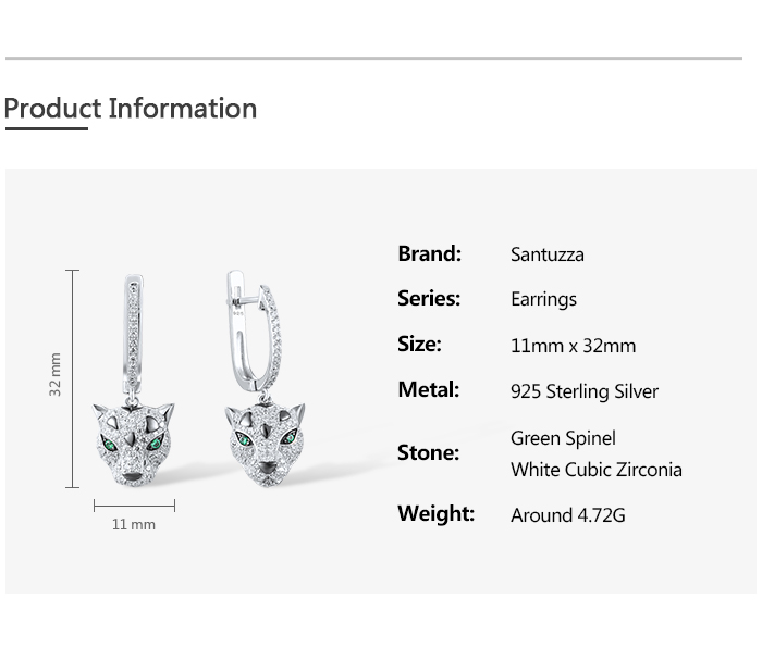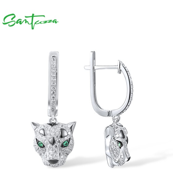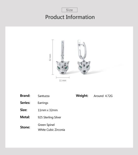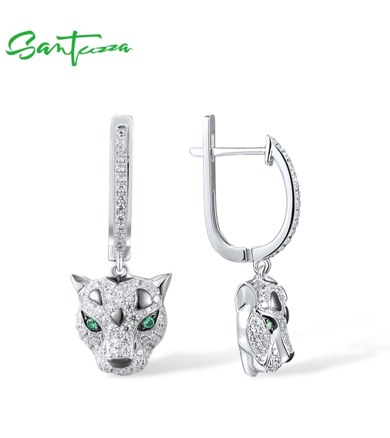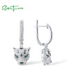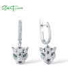 SANTUZZA 925 Sterling Silver Dangling Earrings Sparkling Green Spinel White CZ Leopard Animal Jewelry