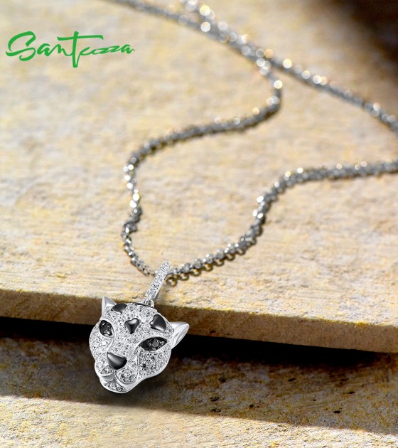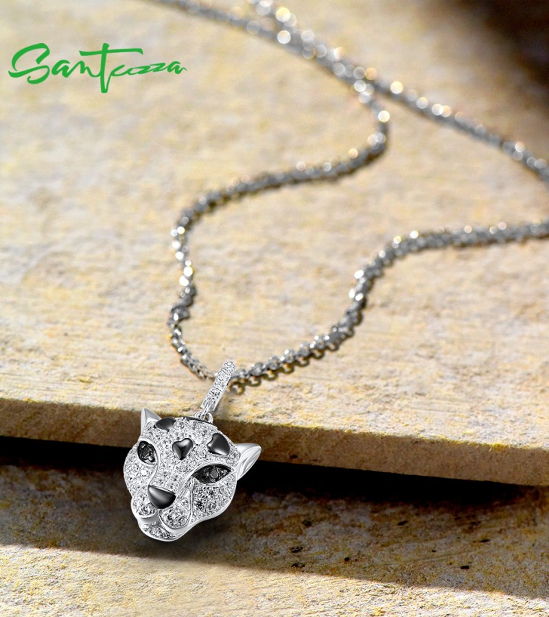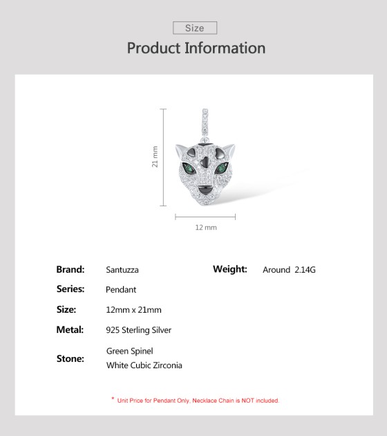 SANTUZZA 925 Sterling Silver Pendant Sparkling Green Spinel White Cubic Zirconia Leopard Animal Jewelry