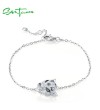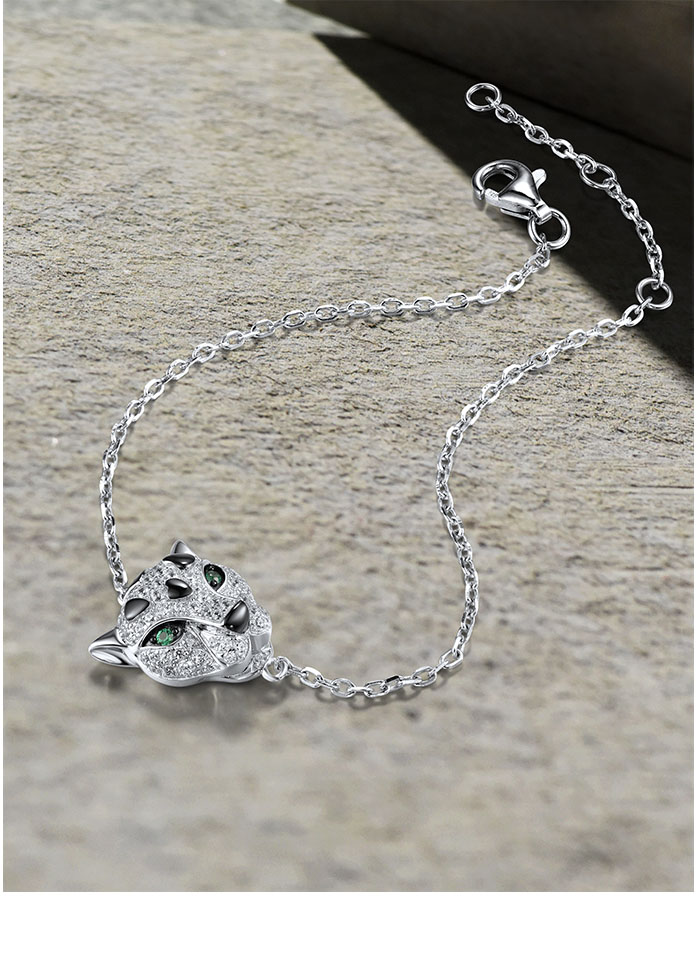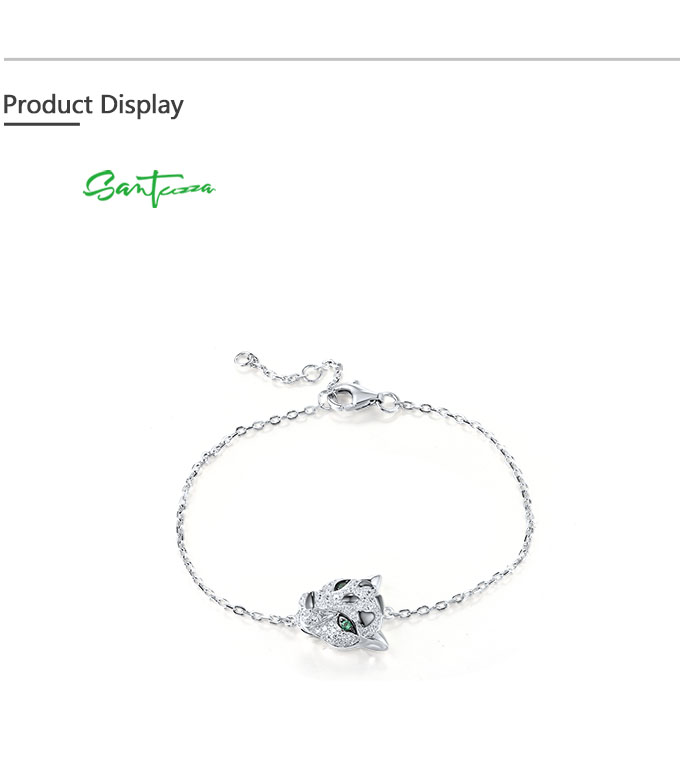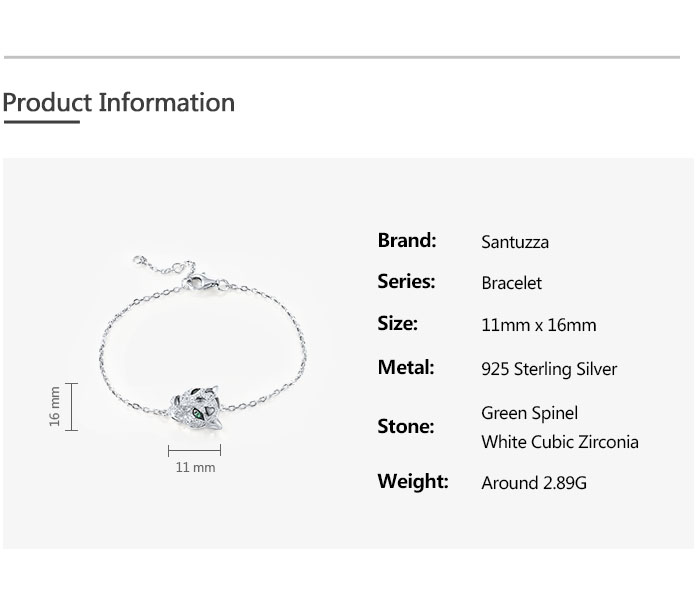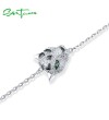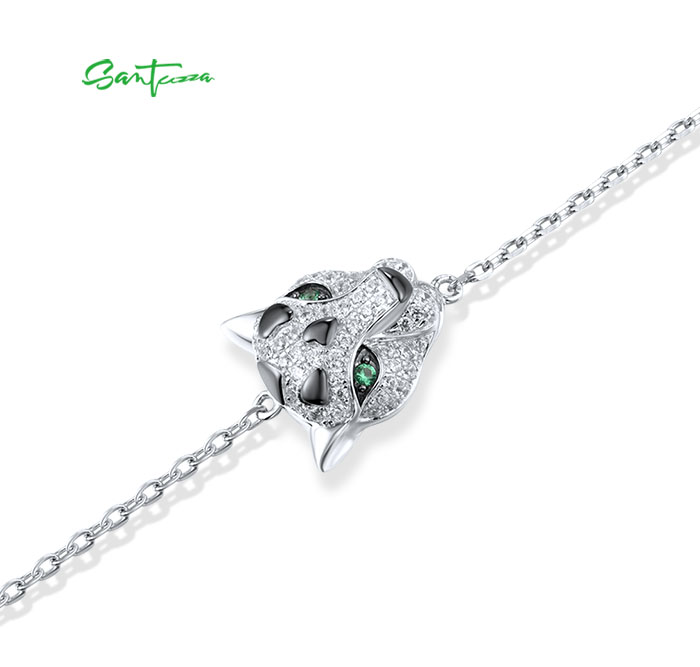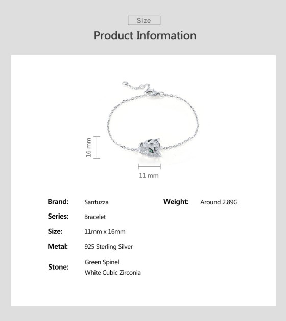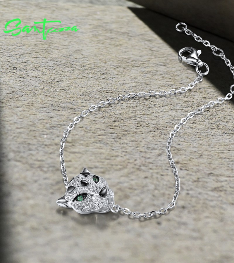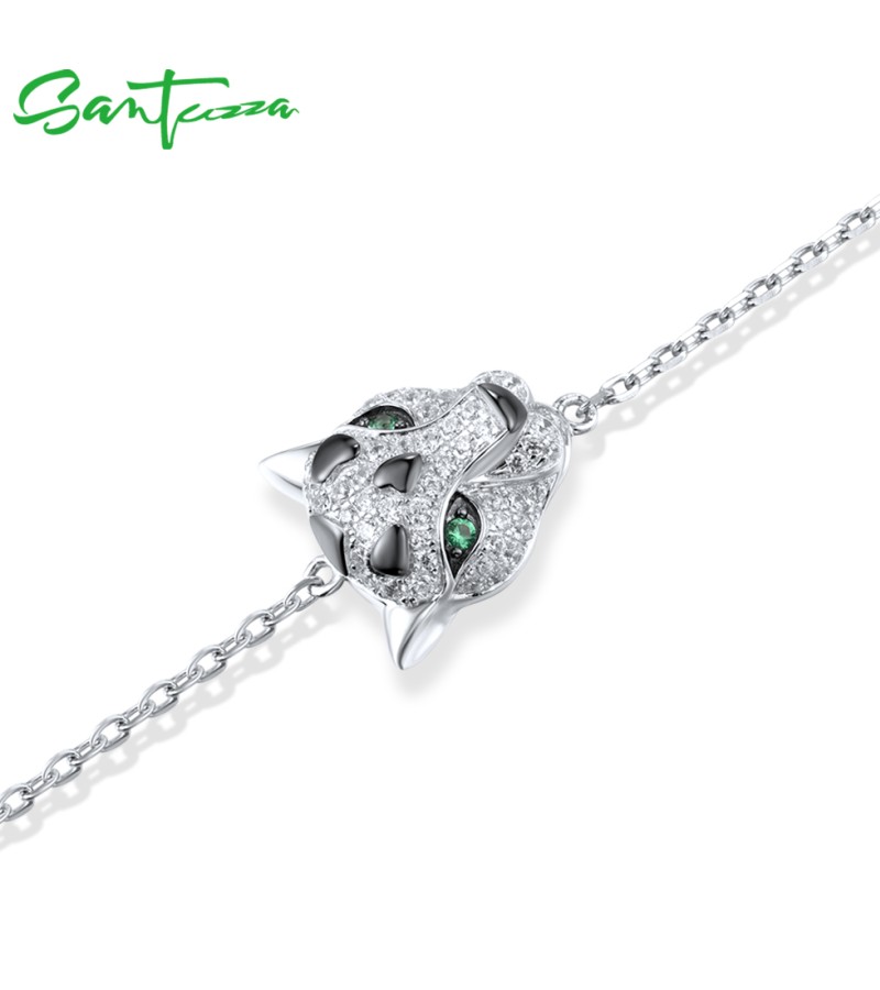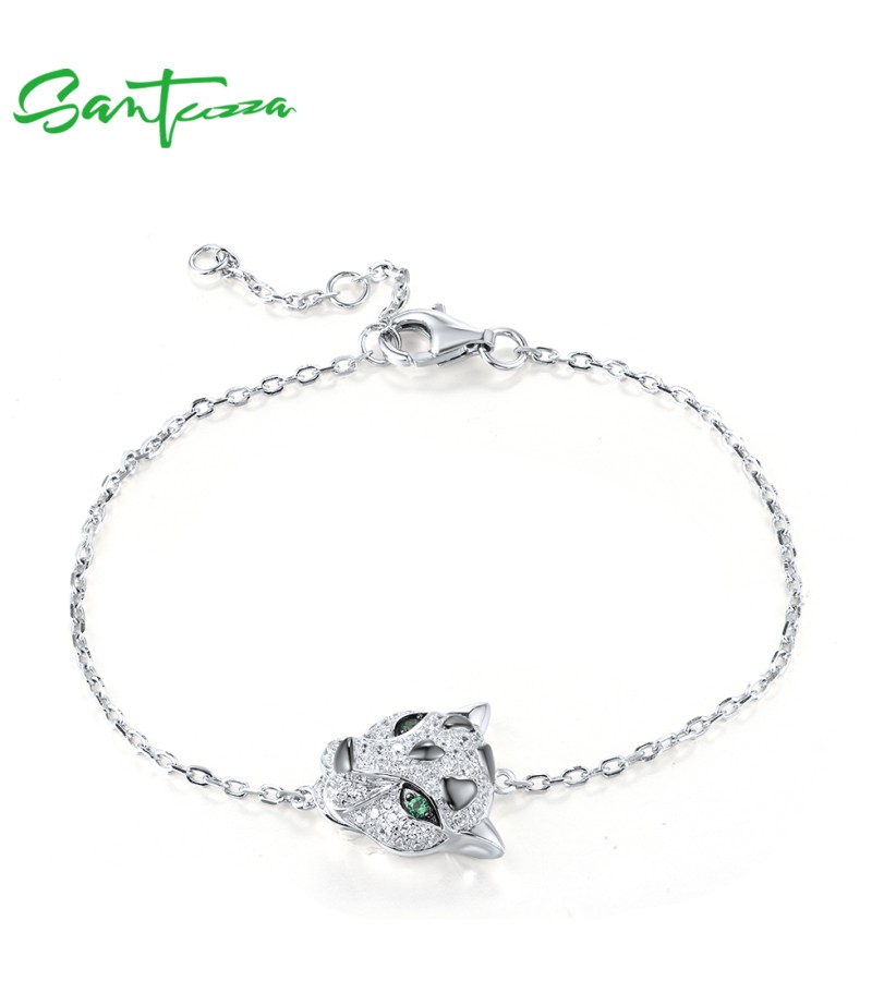 SANTUZZA 925 Sterling Silver Bracelet Leopard Panther Green Spinel White Zirconia Adjustable Jewelry