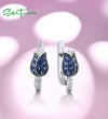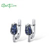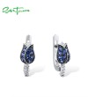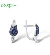 SANTUZZA 925 Sterling Silver Earrings For Women Silver Blue Tulip Cubic Zirconia Jewelry