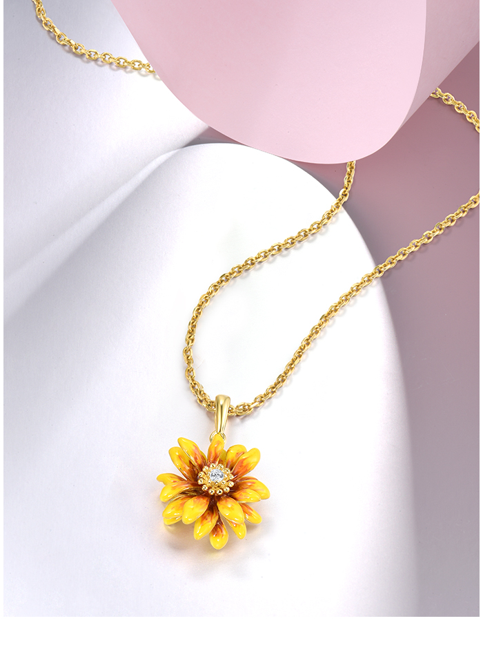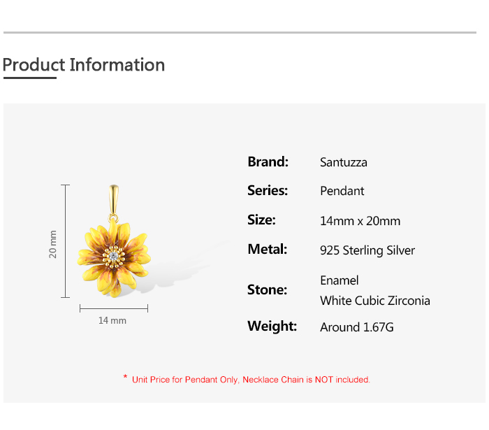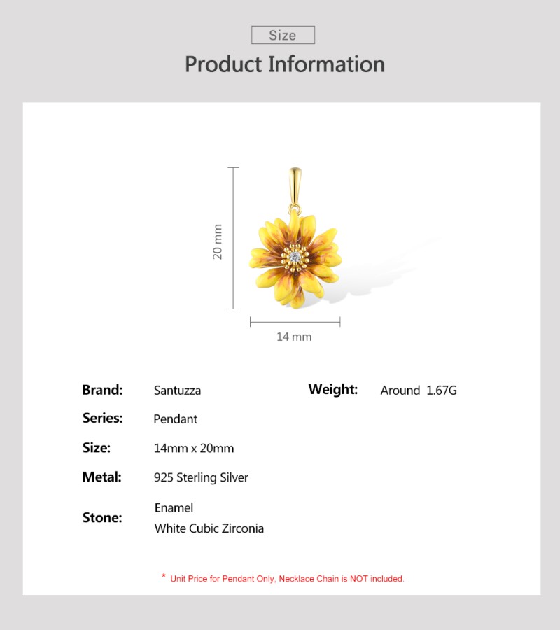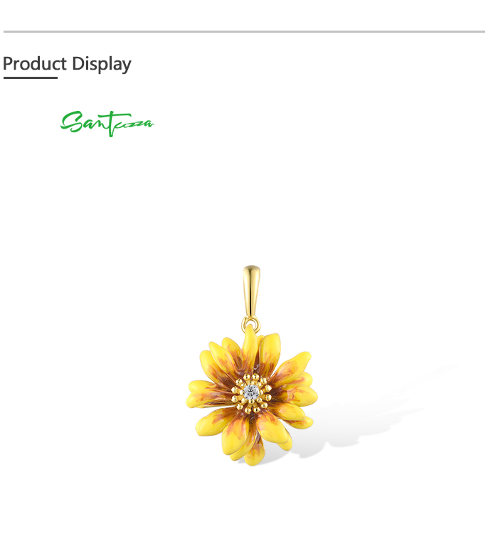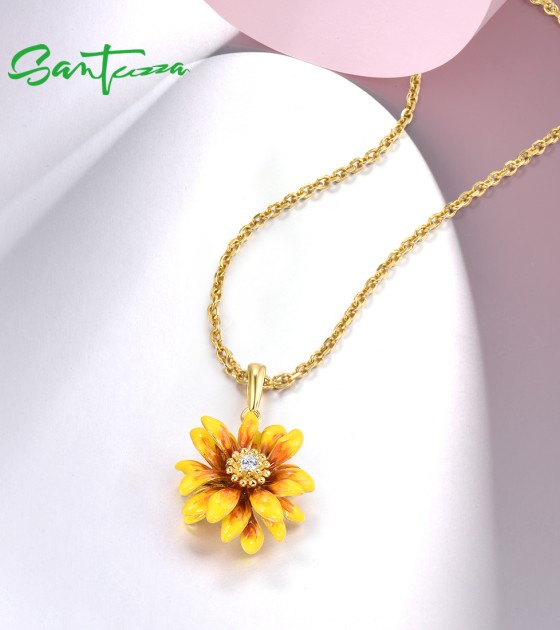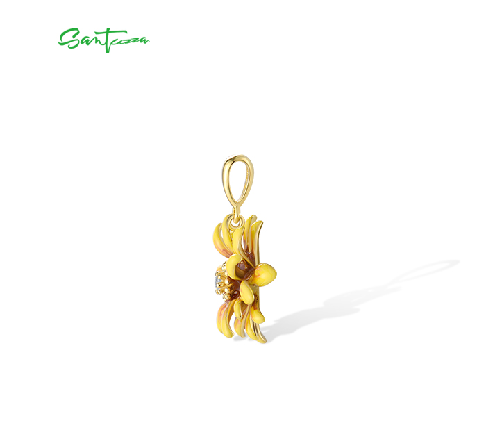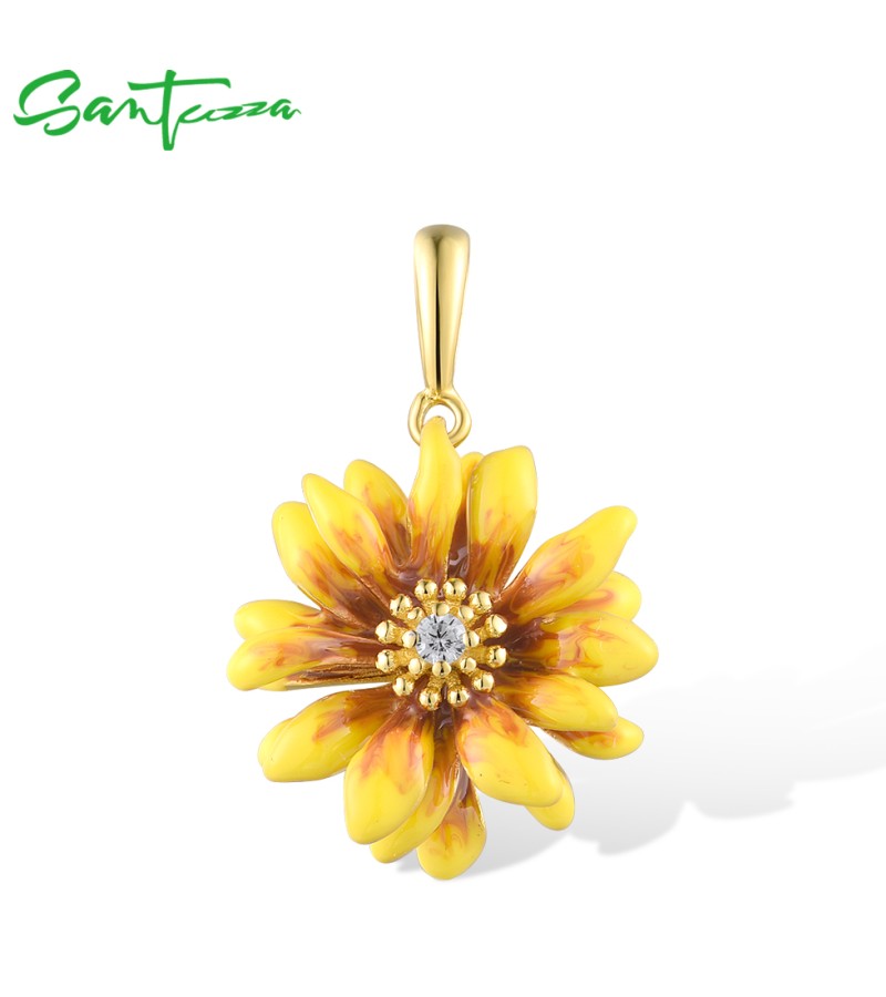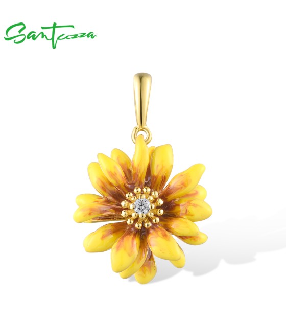 SANTUZZA 925 Sterling Silver Pendant White CZ Enamel Yellow Flower Fine Jewelry