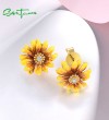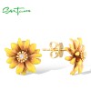SANTUZZA 925 Sterling Silver Earrings White CZ Enamel Yellow Flower Fine Jewelry