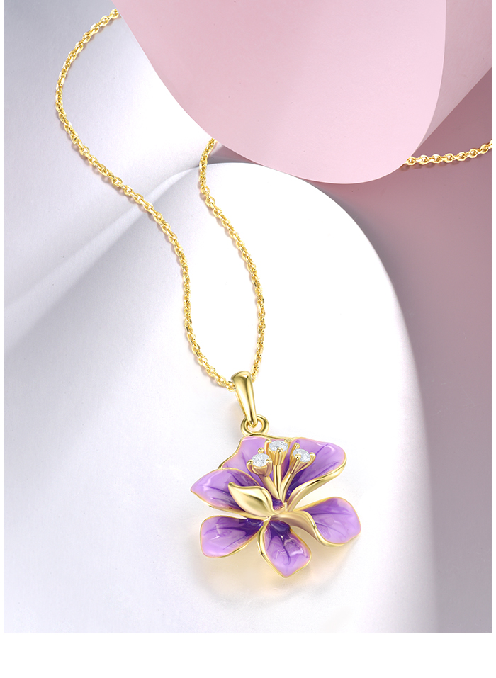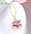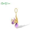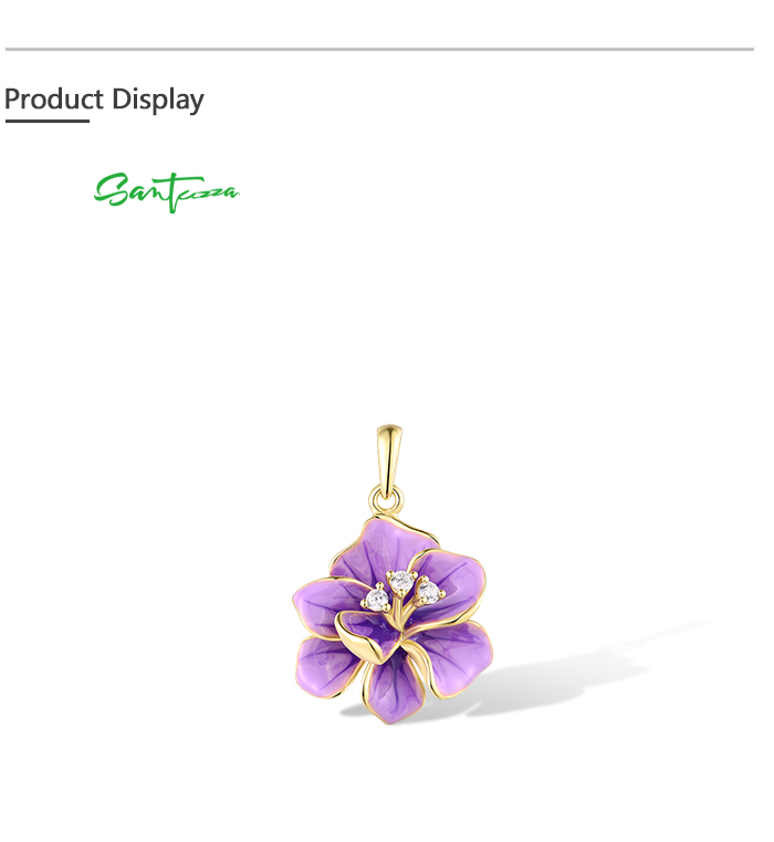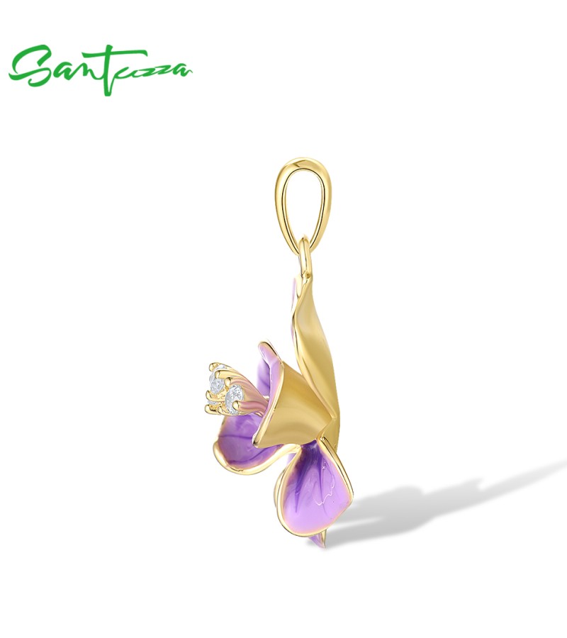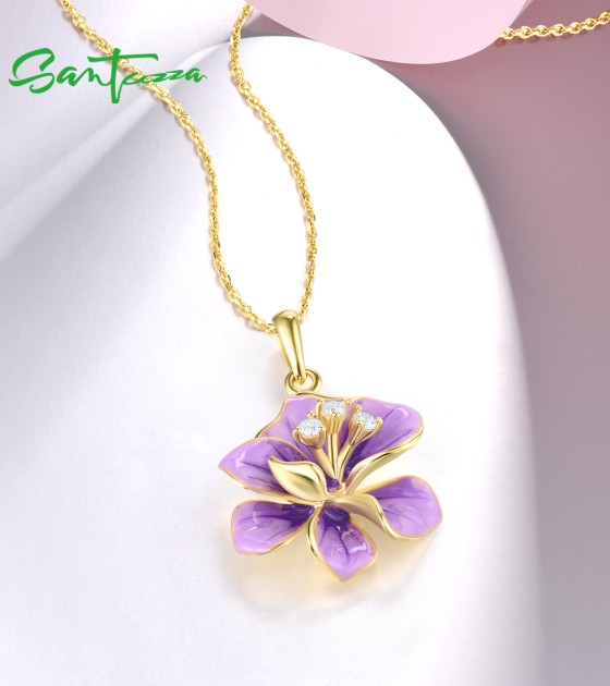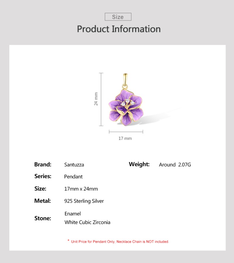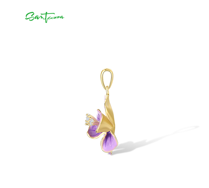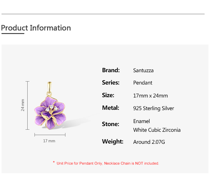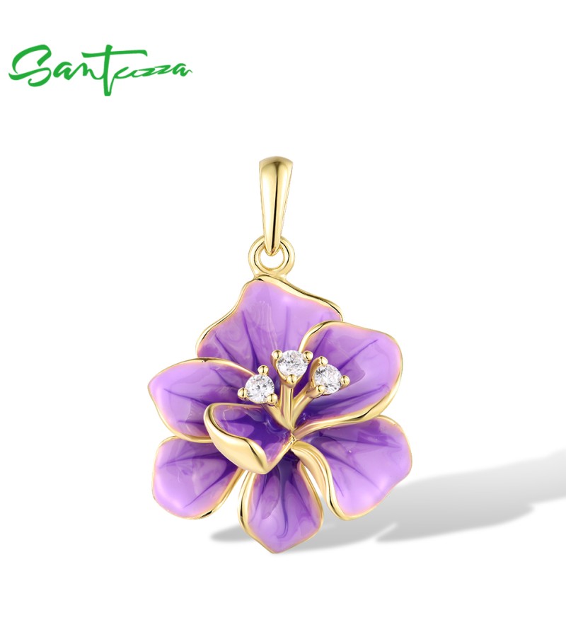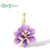 SANTUZZA 925 Sterling Silver Pendant White CZ Purple Enamel Flower Fine Jewelry