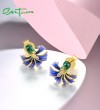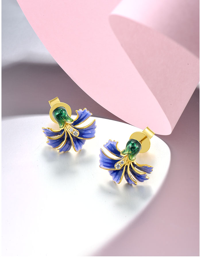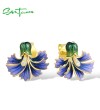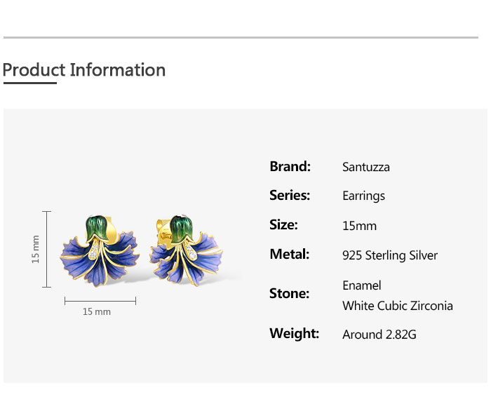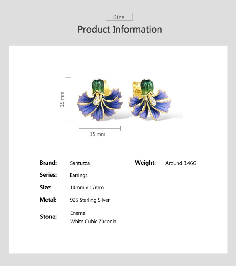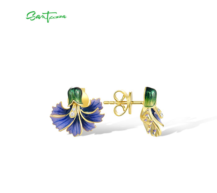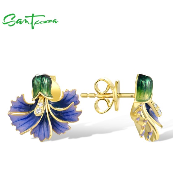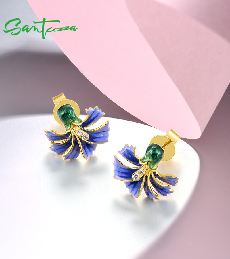 SANTUZZA 925 Sterling Silver Earrings White CZ Blue Enamel Floral Fine Jewelry