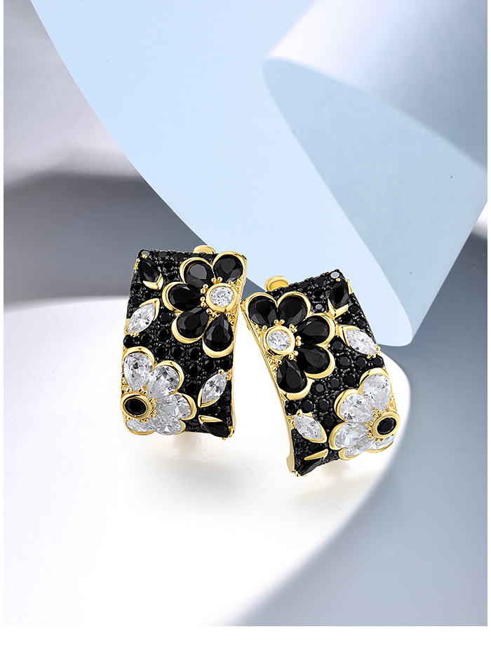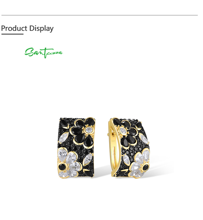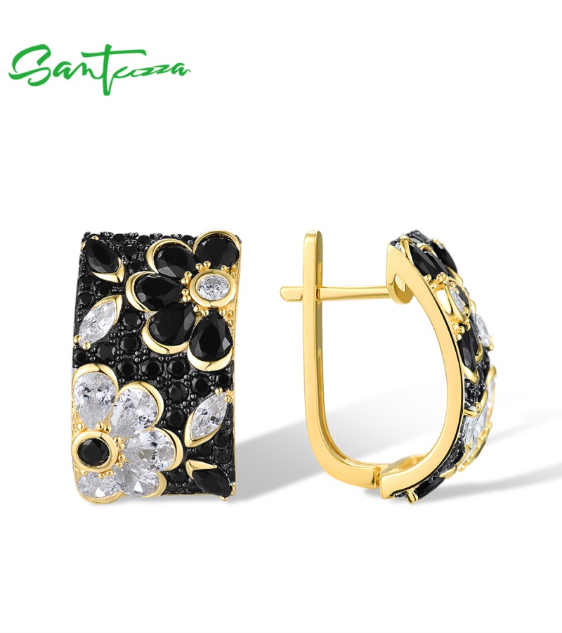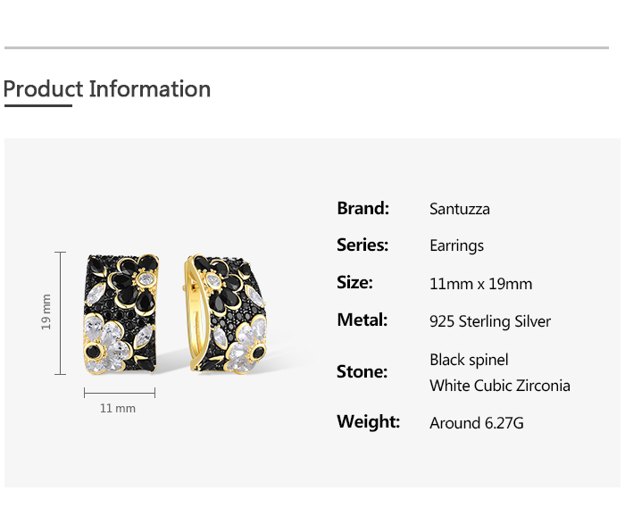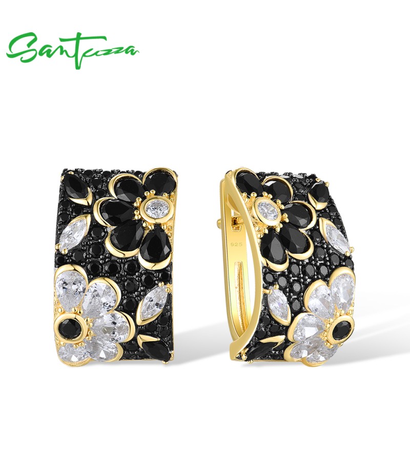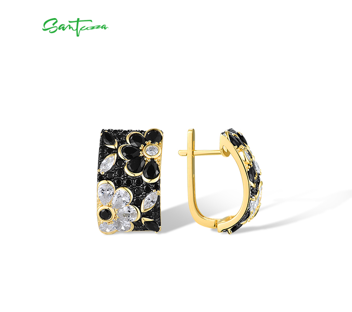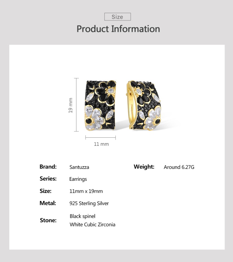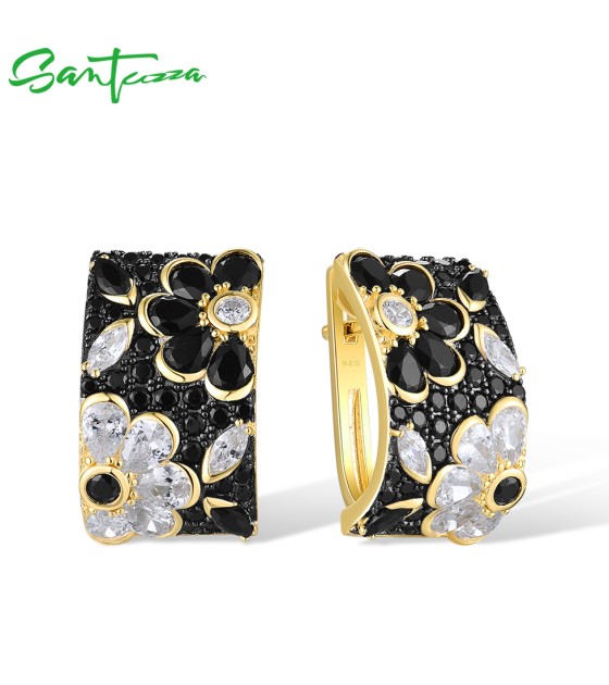 SANTUZZA 925 Sterling Silver Earrings Black Spinel White Flower Trendy Fine Jewelry