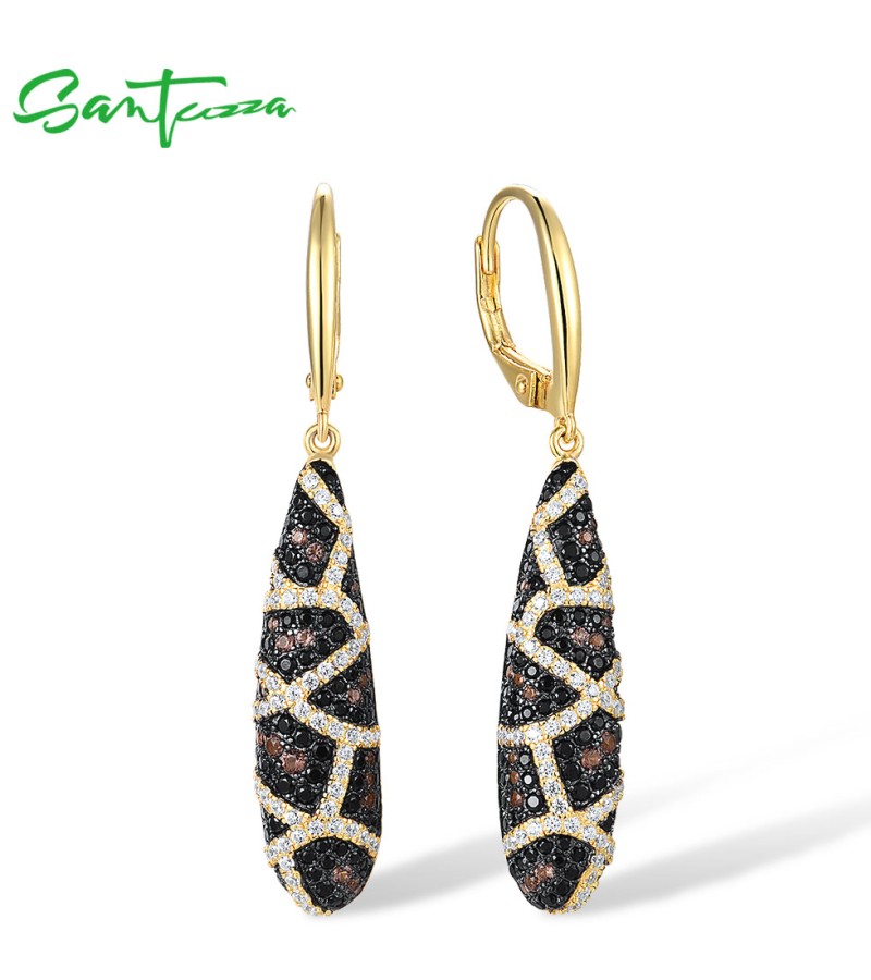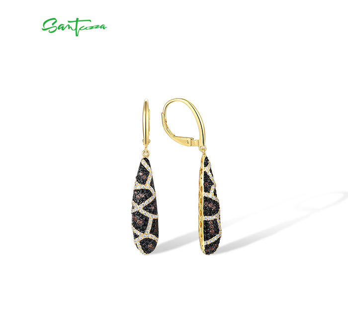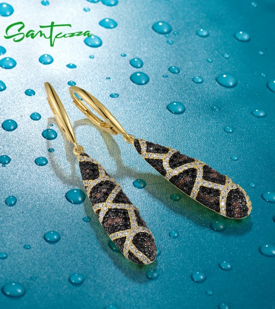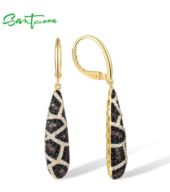 SANTUZZA 925 Sterling Silver Dangling Earrings White Black Nano Brown Spinel Jewelry