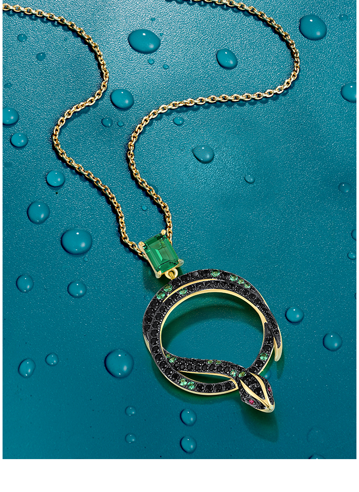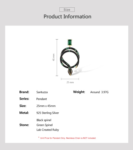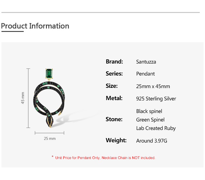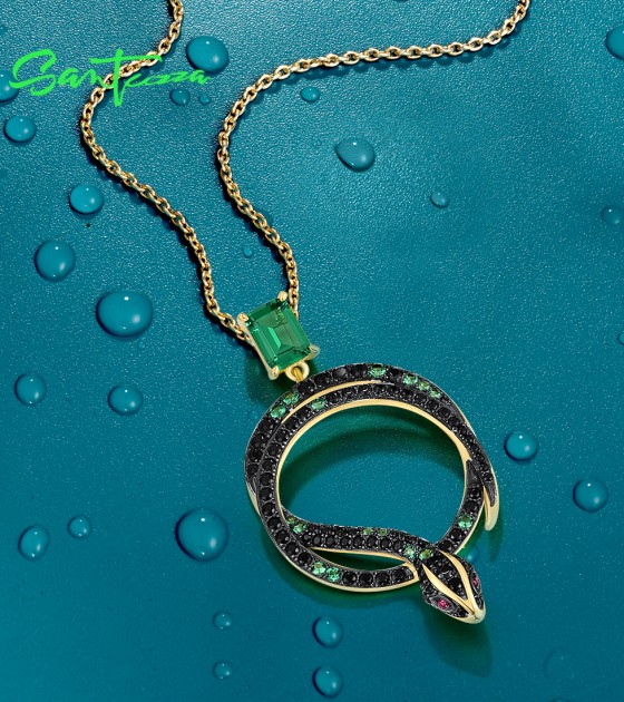 SANTUZZA 925 Sterling Silver Pendant Black Green Spinel Snake Safari Animal Jewelry