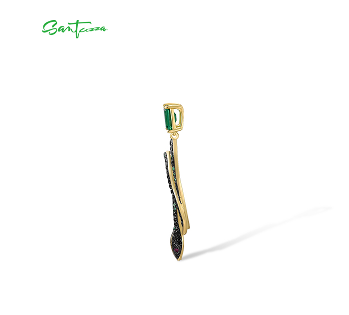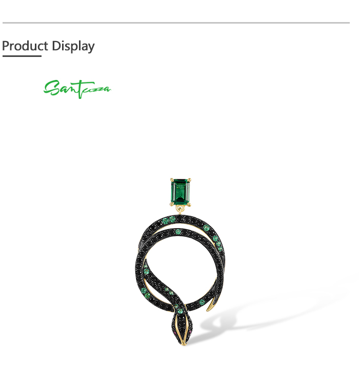 SANTUZZA 925 Sterling Silver Stud Earrings Black Green Spinel Snake Animal Jewelry