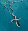SANTUZZA 925 Sterling Silver Pendant Classic Cross Black Spinel White CZ Jewelry