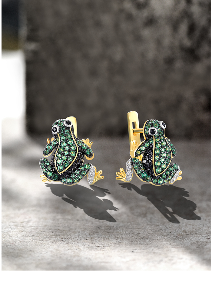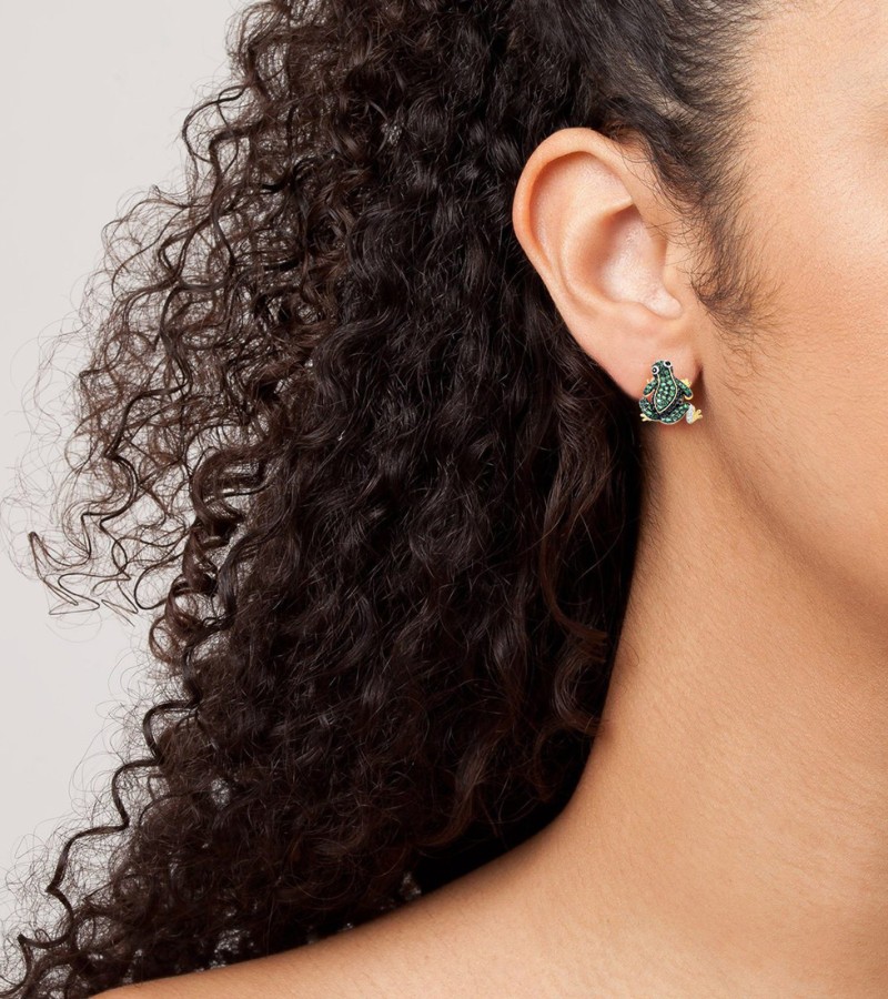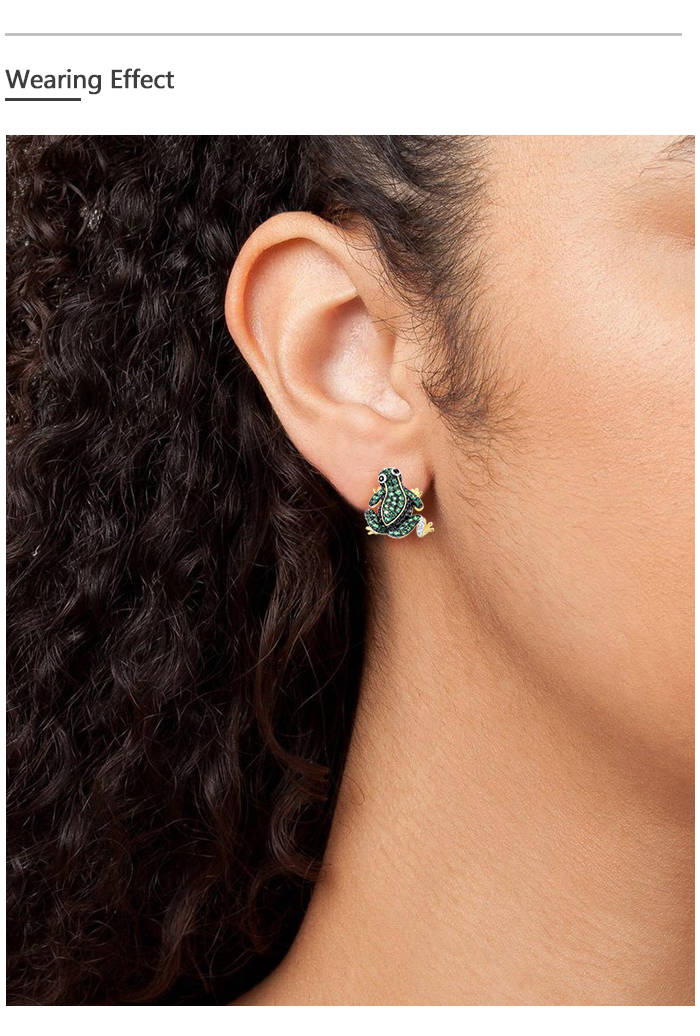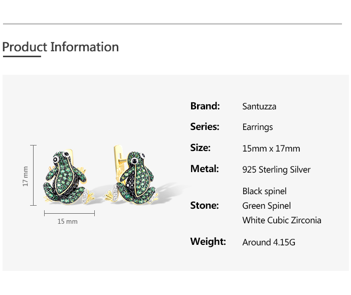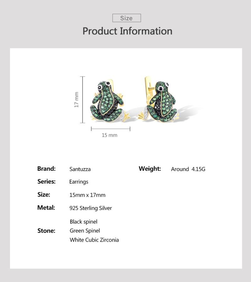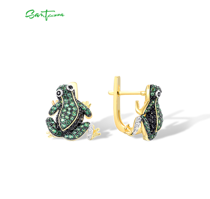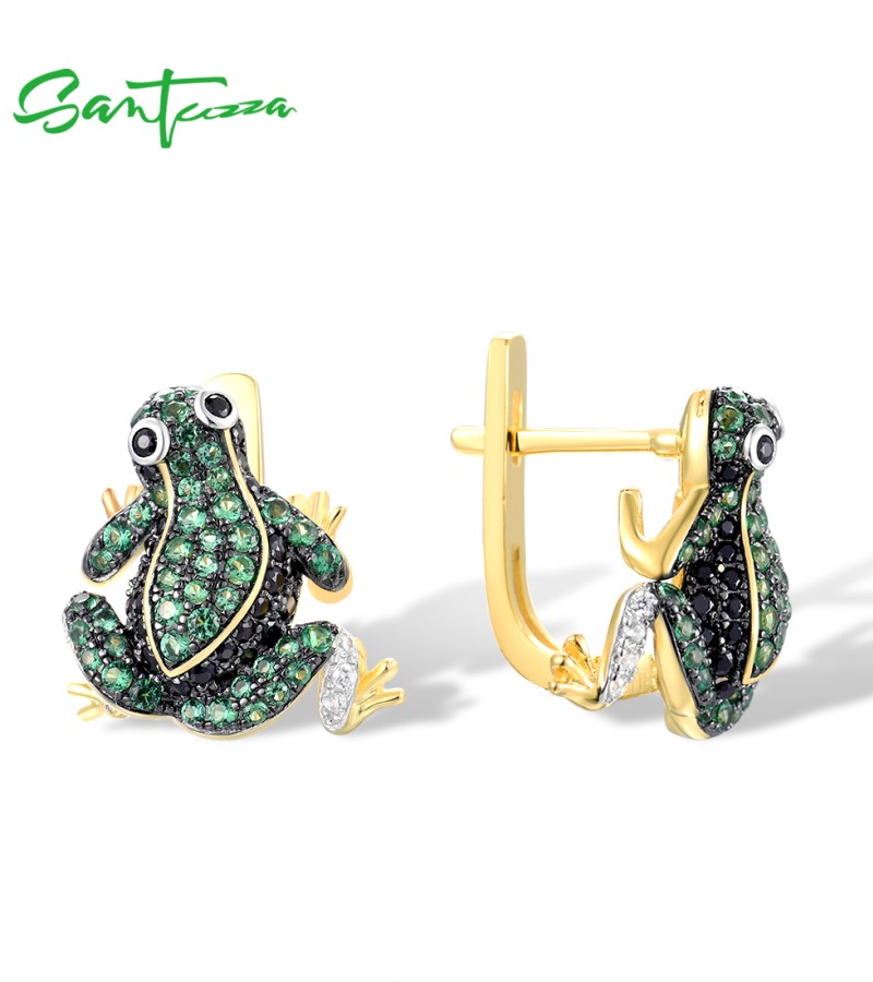 SANTUZZA 925 Sterling Silver Earrings Green Black Spinel White CZ Frog Animal Jewelry