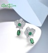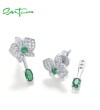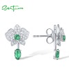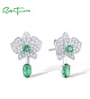 SANTUZZA 925 Sterling Silver Stud Earrings White CZ Green Spinel Flower Dangling Jewelry