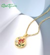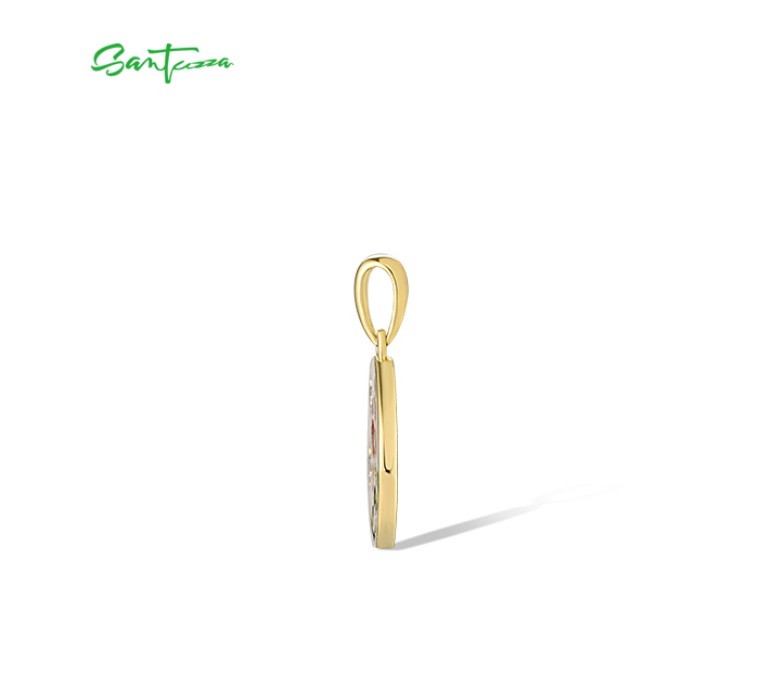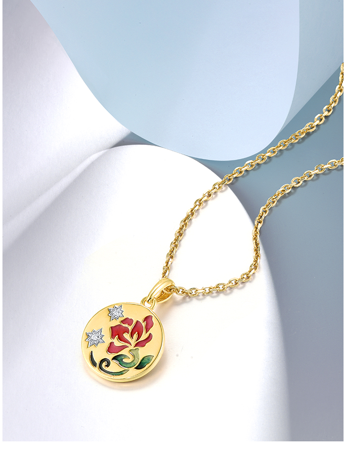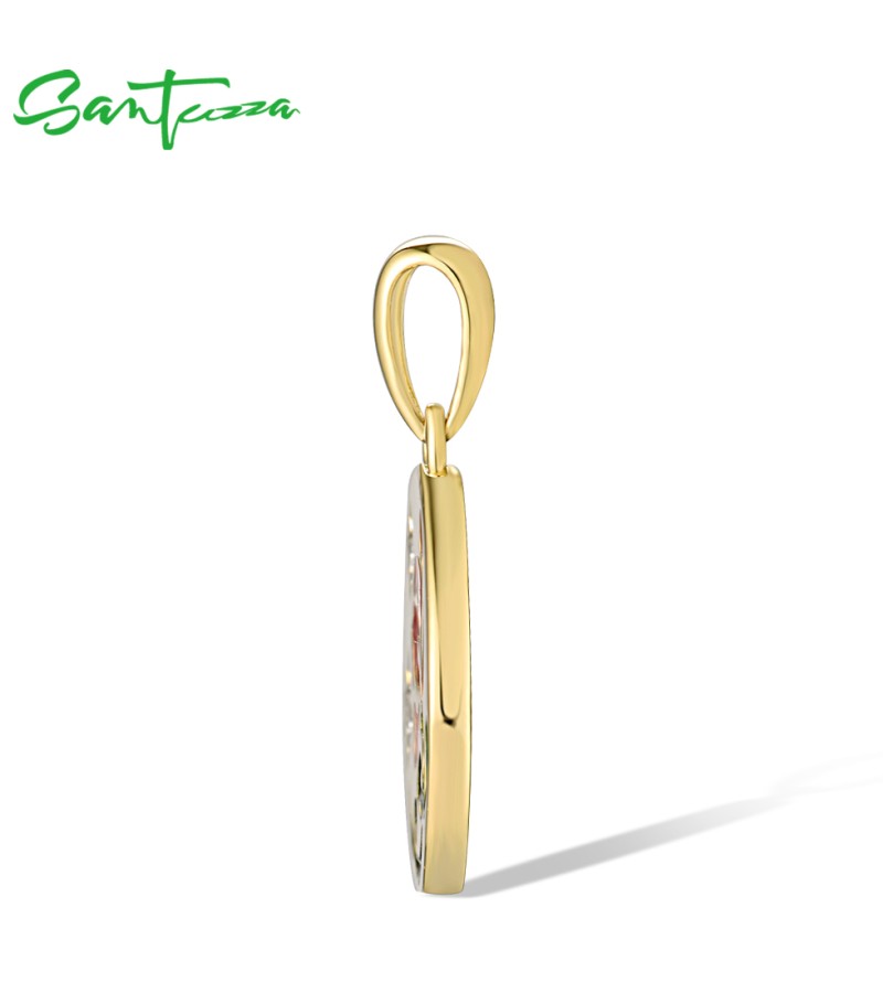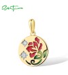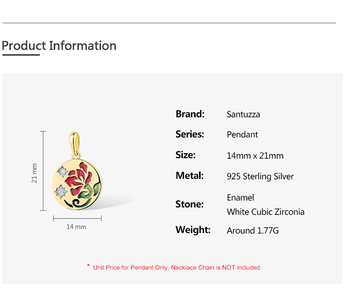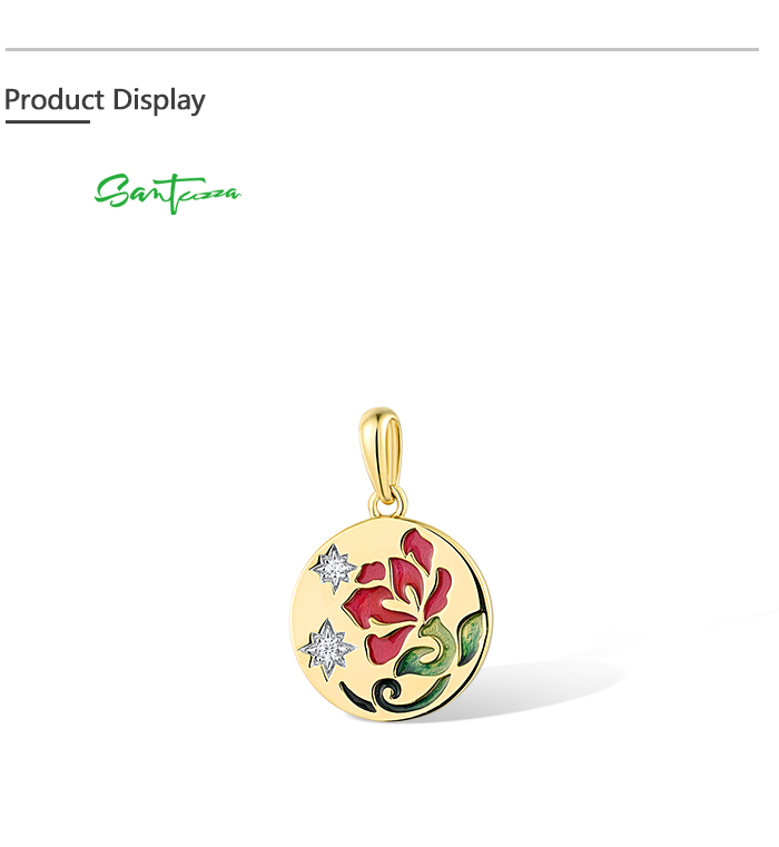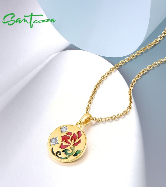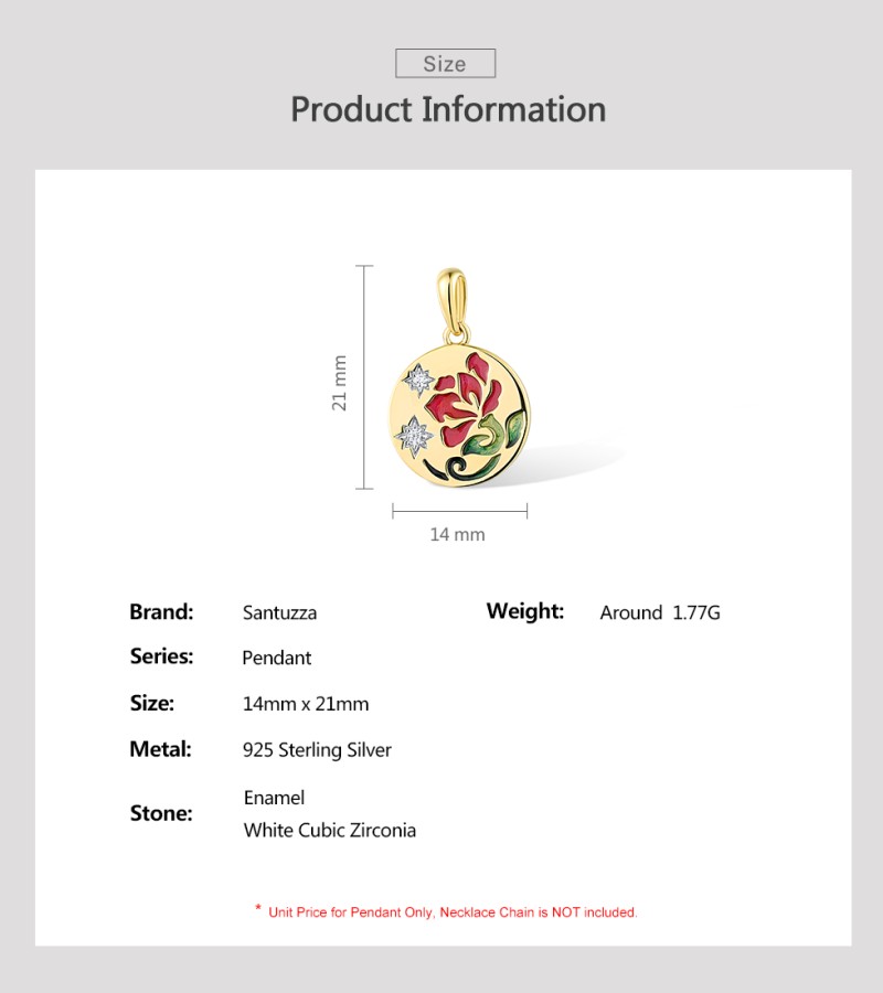 SANTUZZA 925 Sterling Silver Pendant White Enamel Red Flower Enamel Jewelry